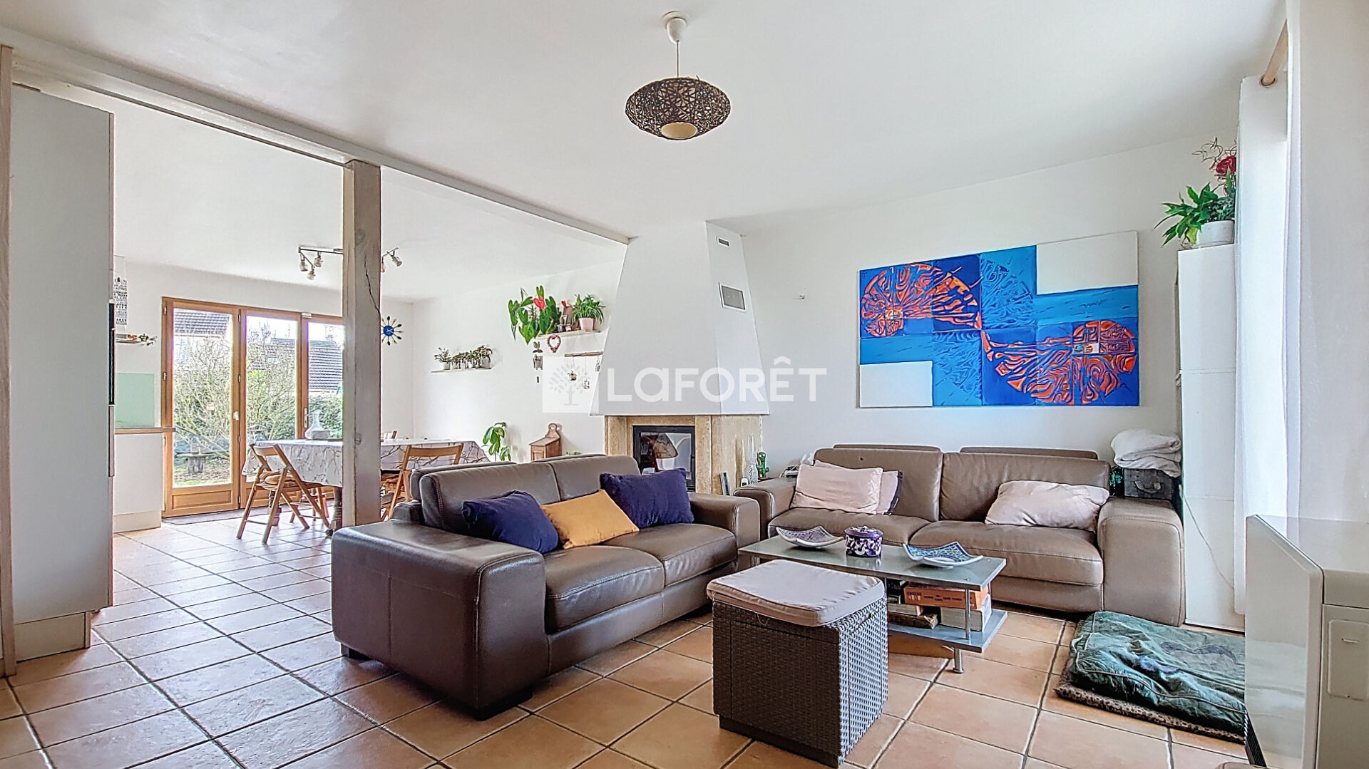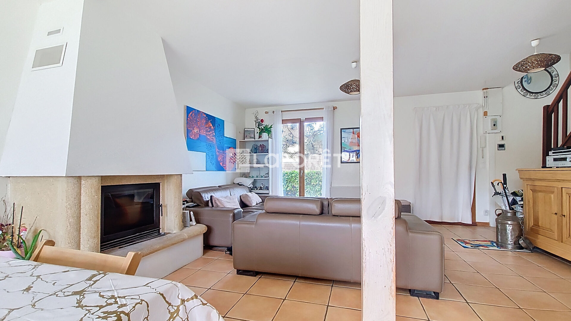 - L'espace de vie de plus de 36 m² avec cheminée