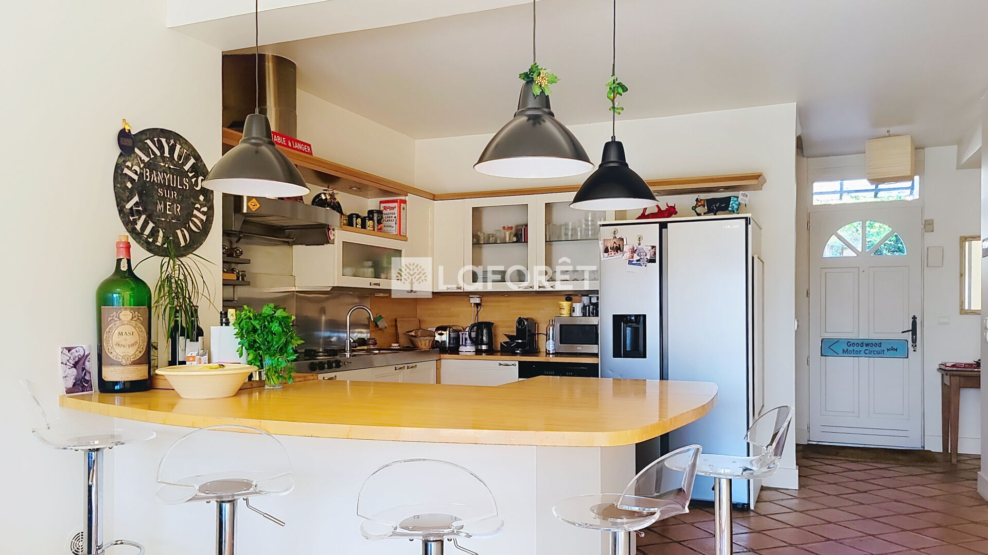 La cuisine américaine, aménagée et équipée, s'intègre à cet espace de vie et accompagne facilement les moments du quotidien.