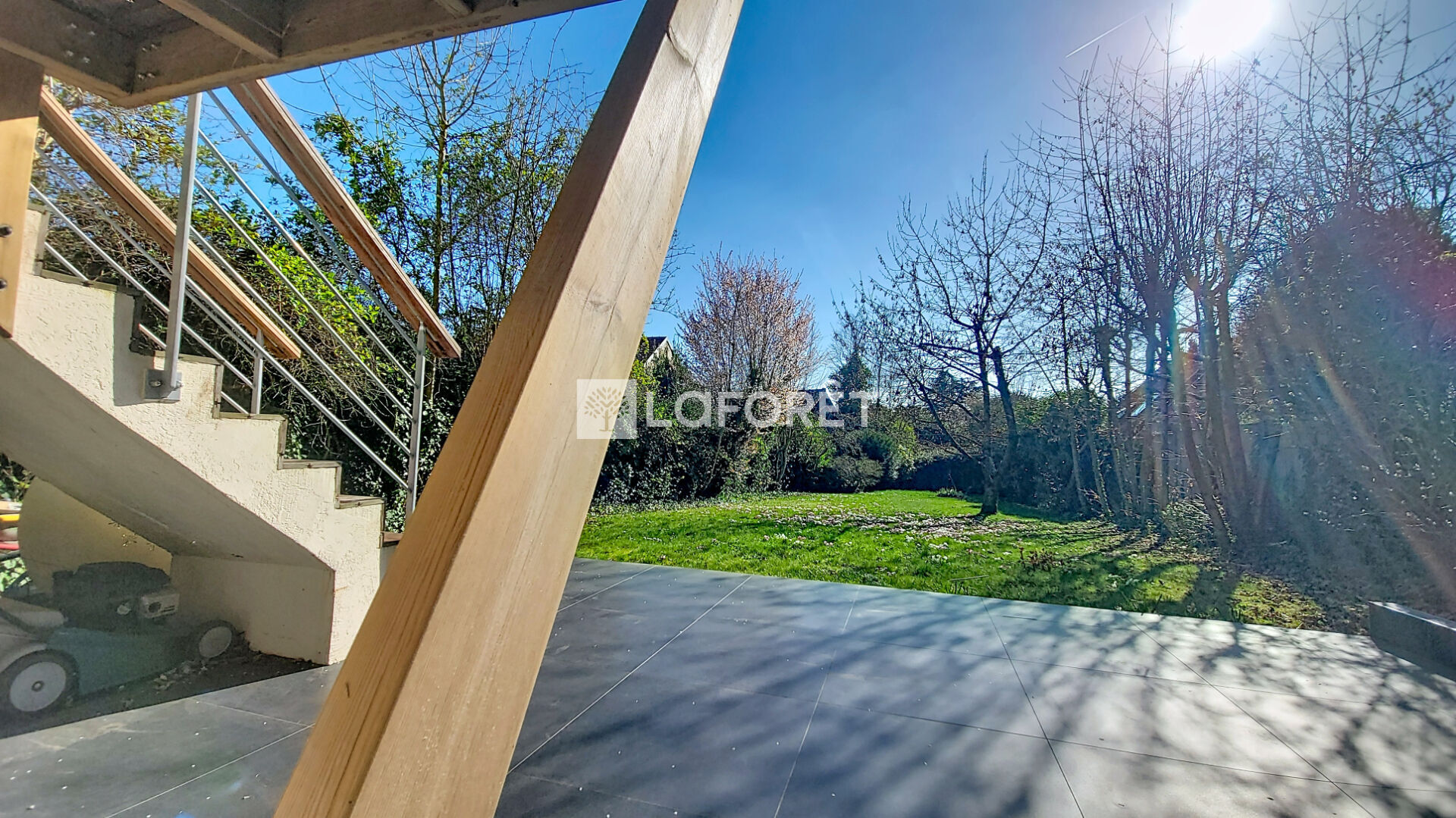 La maison profite également d'une seconde terrasse au niveau du jardin, qui prolonge naturellement les espaces extérieurs et permet d'apprécier pleinement le terrain d'environ 679 m².