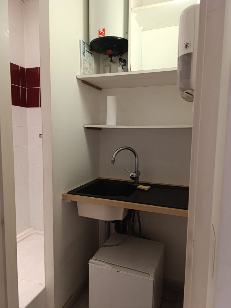 Accès pmr, ascenseur, il est composé d'une salle d attente- trois bureaux cloisonnés et un coin douche.