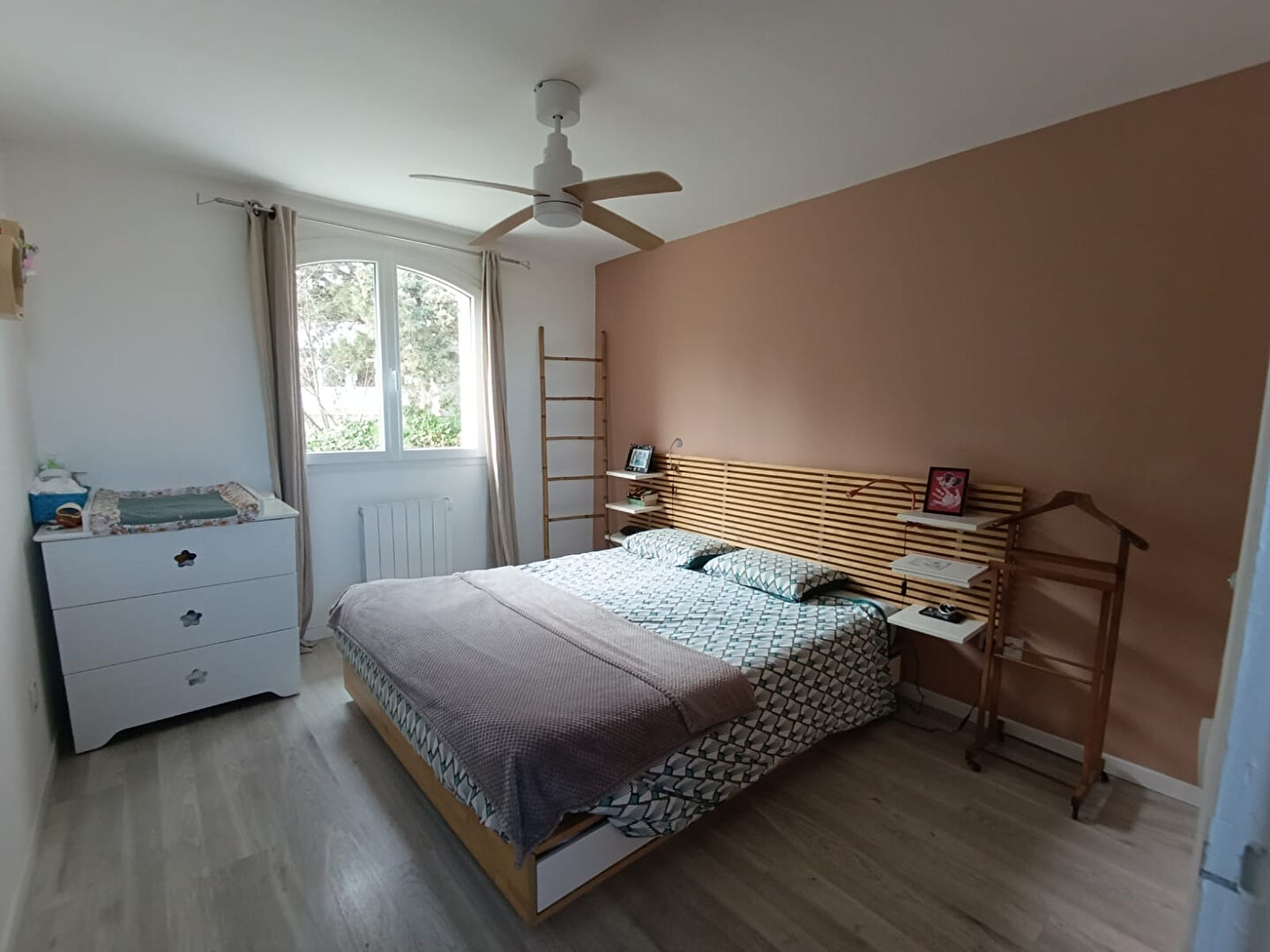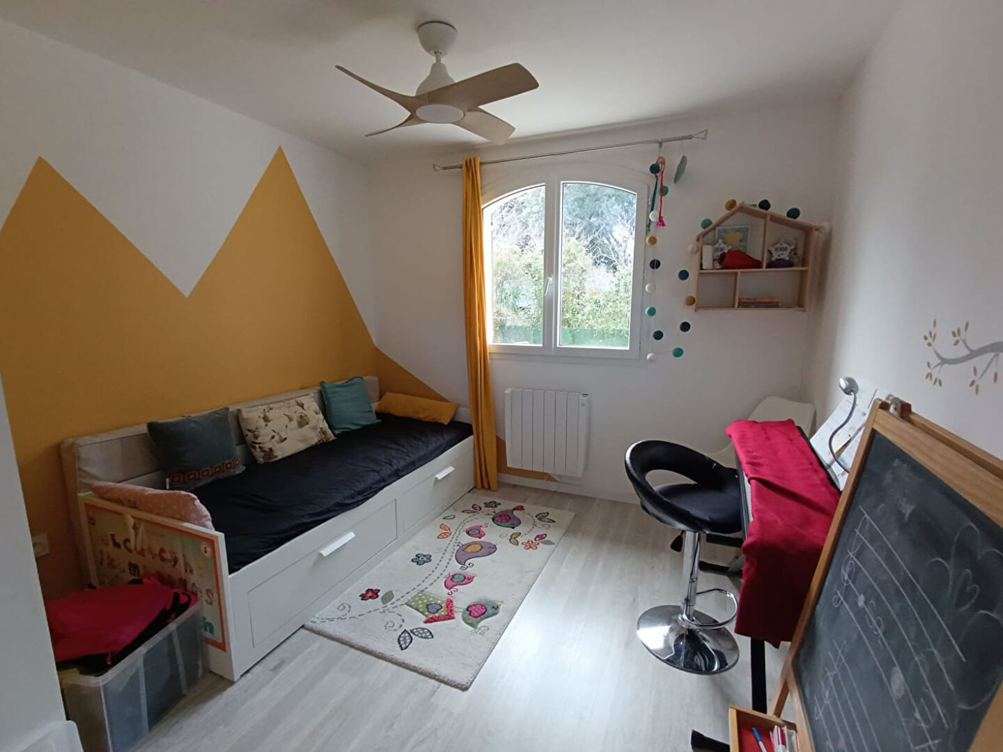 Côté nuit : 3 chambres avec placards, 1 bureau (ou 4ème chambre) 1 salle de bain avec baignoire et douche