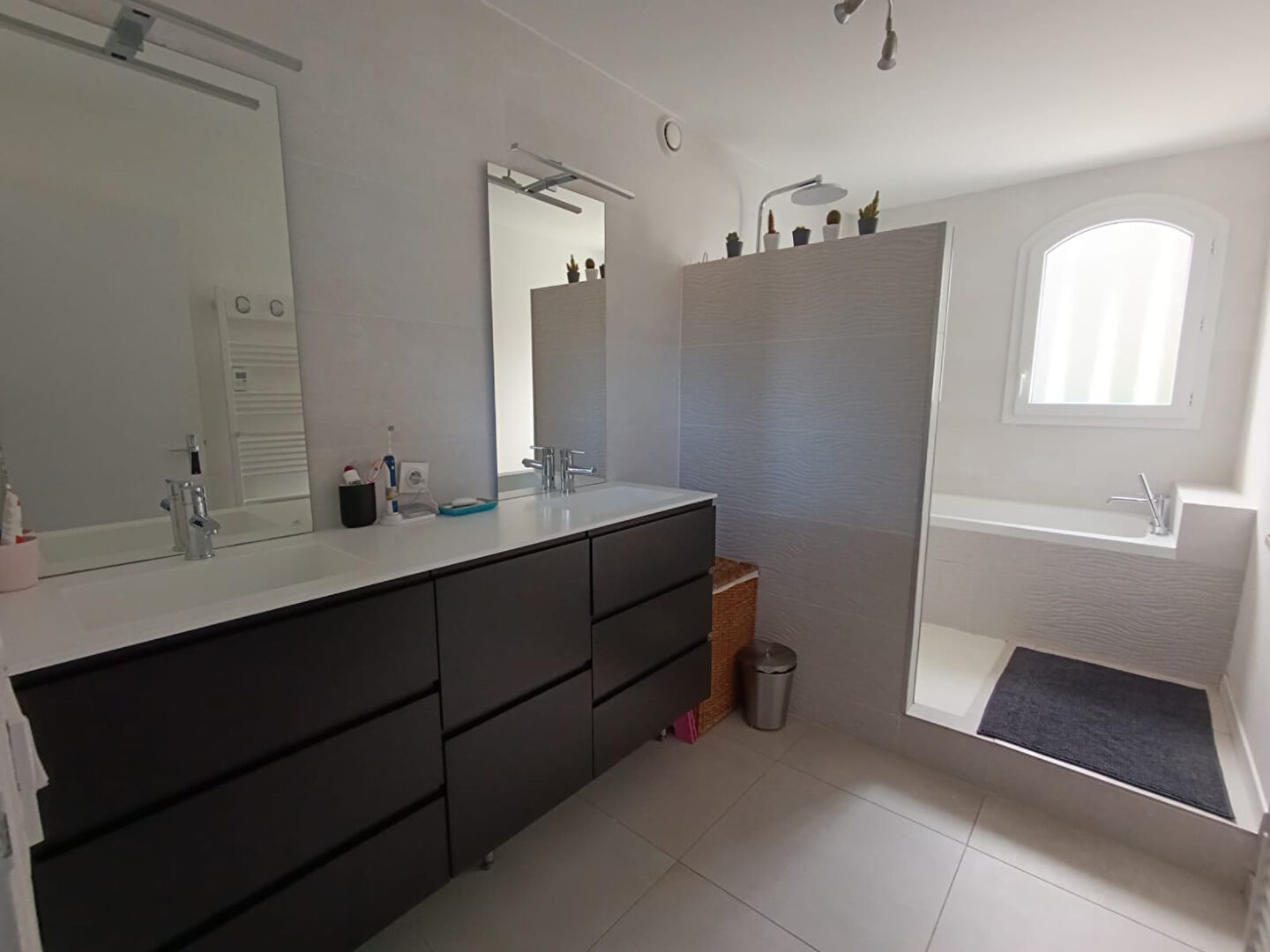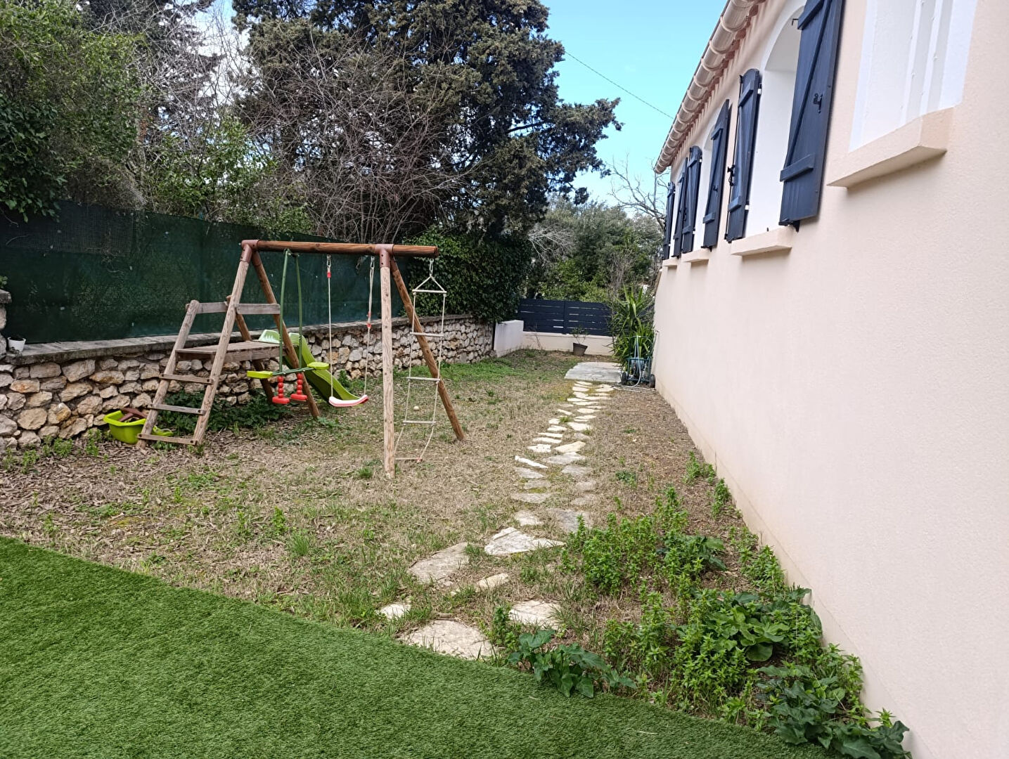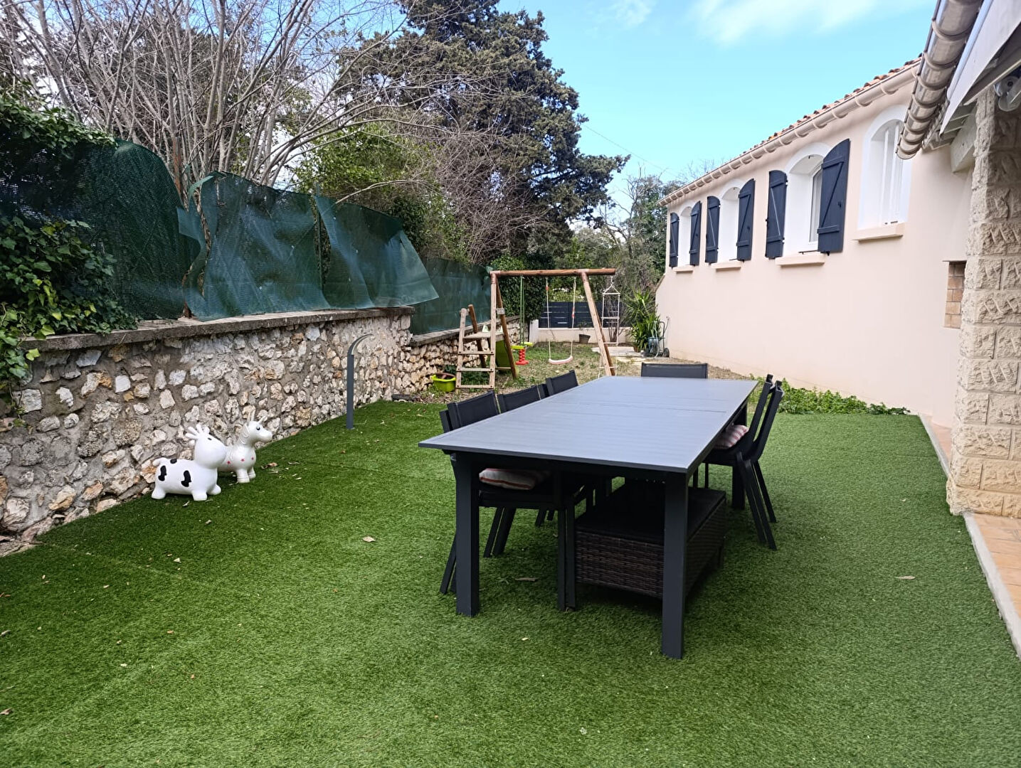 Implantée sur un terrain de 500 m² intime et arboré sans aucun vis-à-vis, la villa dispose d'une piscine au sel , d'une grande terrasse de 80 m², d'un coin barbecue et un espace dédié aux jeux pour les enfants.
