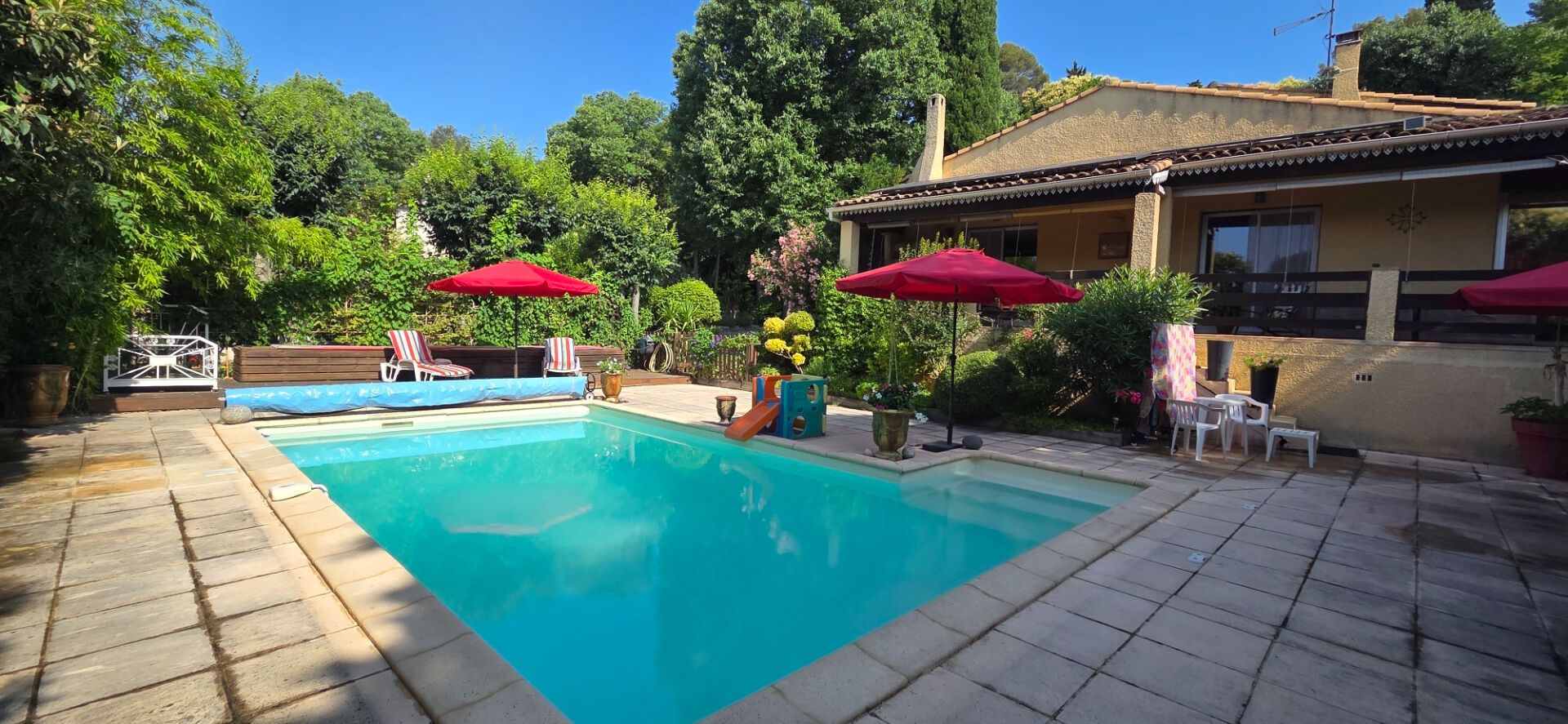 Vous recherchez les commodités de la ville et la tranquilité de la campagne ? Cette villa est faite pour vous avec son terrain arboré de 1400 m² et sa piscine avec cuisine d'été.