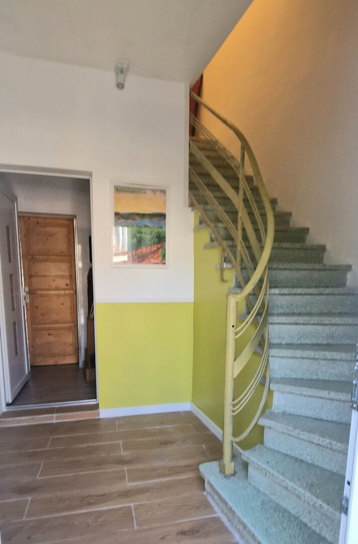 Vous trouverez au rdc un hall ainsi qu'un cellier fonctionnel pratique pour votre rangement. A l'étage une pièce à vivre de plus de 43 m2 baignée de lumière grâce à la large baie vitrée donnant accès à la terrasse de 27 m2 exposée sud ouest, sans vis à vis pour profiter de vos repas d'été au calme. A l'abri des regards. Deux chambres de 10 et 12 m2 ainsi qu'une salle d'eau et un wc complètent ce niveau.