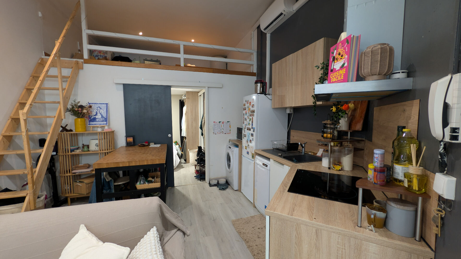 - Un T2 de 26 m² rénové qui comprend : une belle pièce à vivre ouverte sur une cuisine équipée , une mezzanine pour du stockage ou un espace nuit supplémentaire , une chambre avec salle d'eau et toilettes.