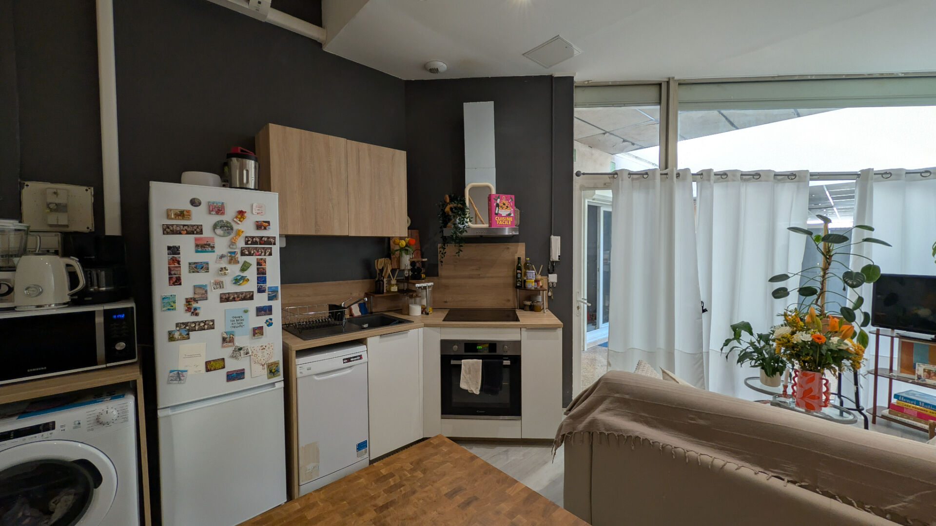 - Un T2 de 38 m² rénové qui comprend : une belle pièce à vivre ouverte sur une cuisine équipée , une mezzanine pour du stockage ou un espace nuit supplémentaire , une chambre avec salle d'eau et toilettes.