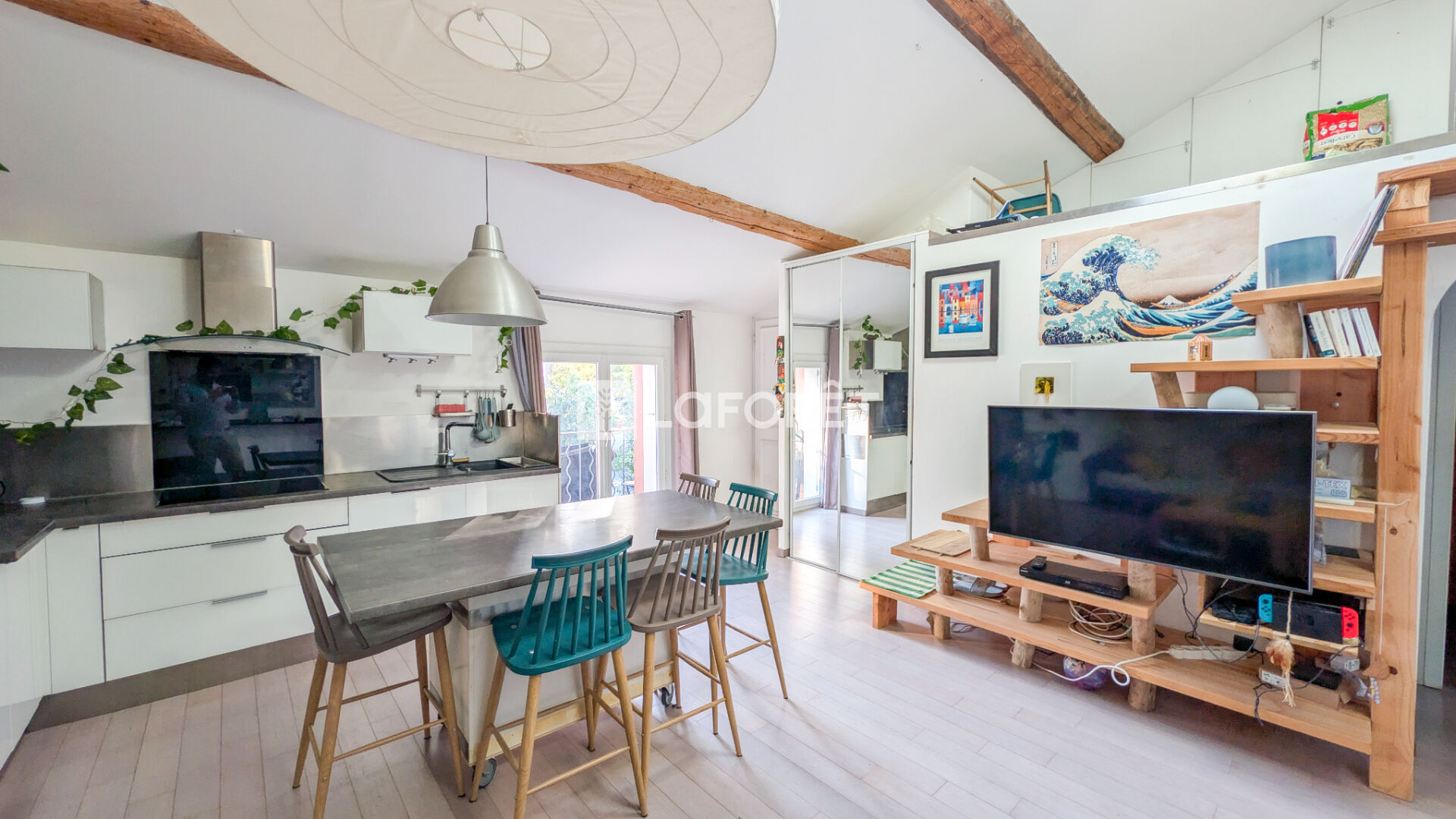 Laforêt Montpellier Sud vous propose au premier et dernier étage ce bel appartement aux allures d'un LOFT avec salon cathédrale ouvert sur sa cuisine équipée .