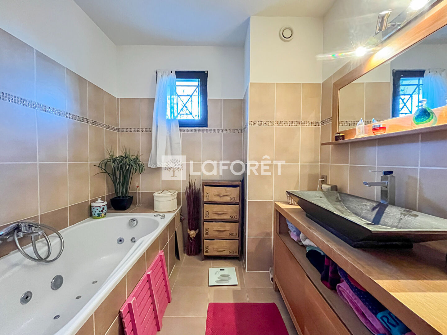 Il se compose d'une entrée, d'un séjour spacieux climatisé de 41 m² ouvrant sur une belle terrasse de 29 m² avec une vue dégagée, une cuisine séparée et aménagée avec accès à un cellier pouvant servir de rangement, de trois chambres, une salle de bain, une salle d'eau et d'un WC.
