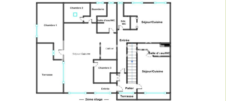 Il se compose de deux studios , d'un T2 et d'un grand T4 au dernier étage avec une belle terrasse .