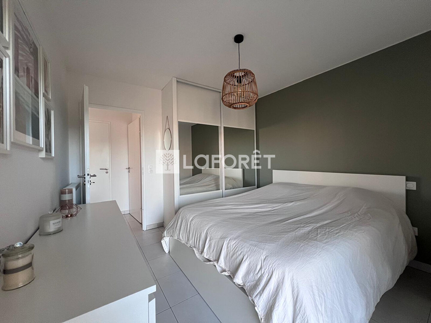 Il se compose d'une entrée avec placard, d'une grande cuisine équipée, d'une buanderie, de deux chambres avec placards ainsi que d'une salle de bains.