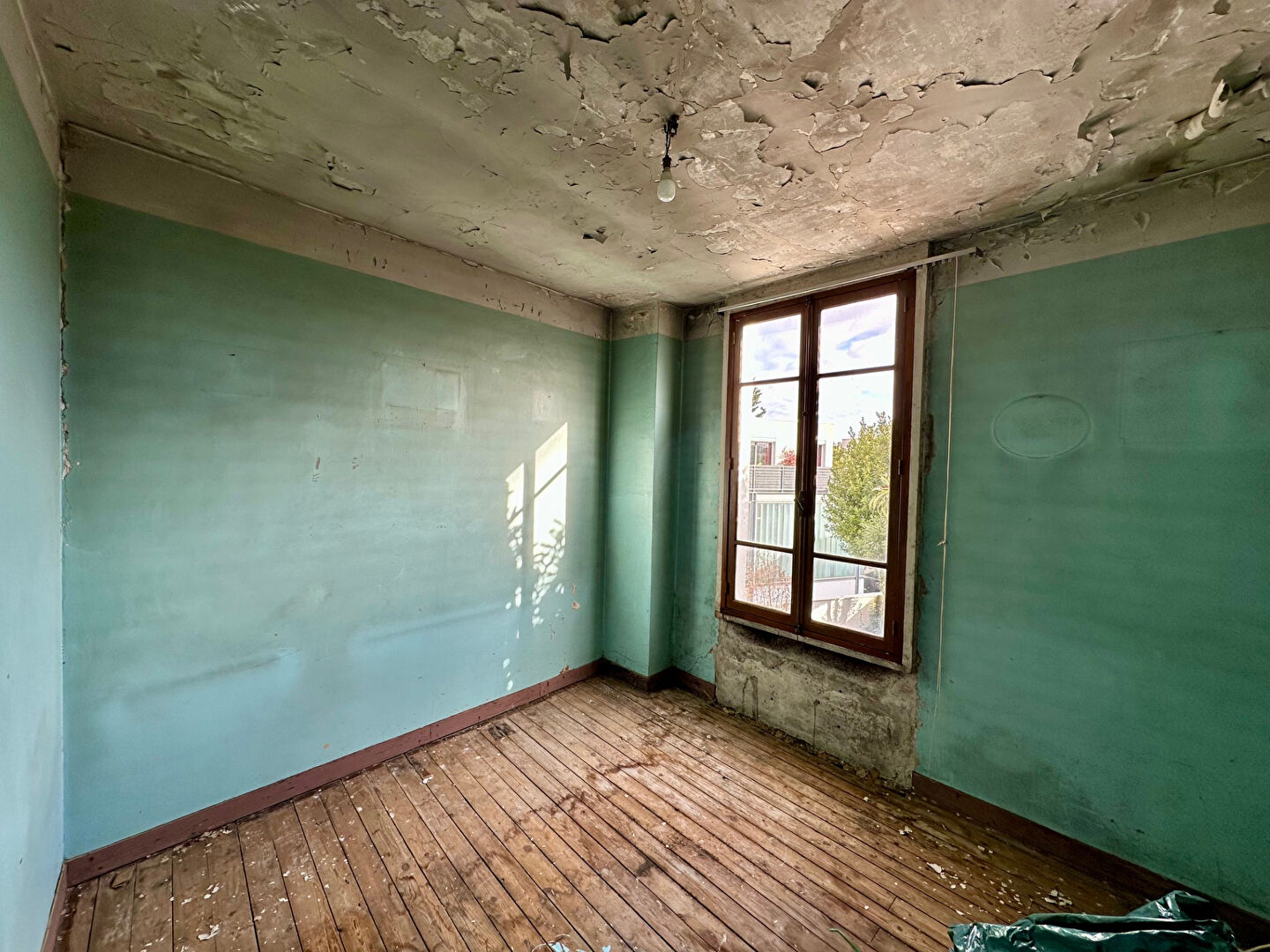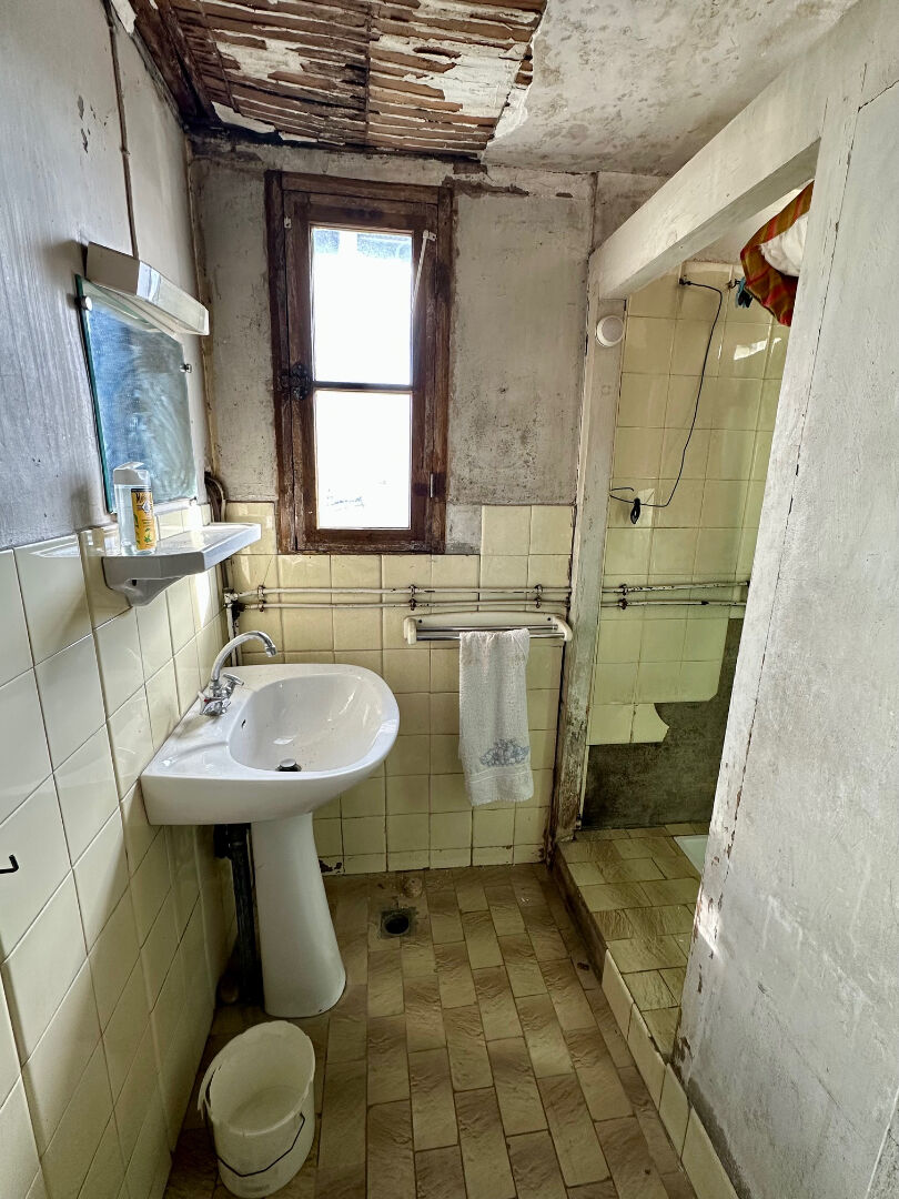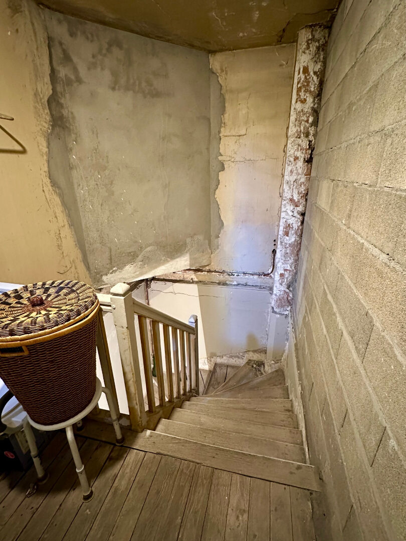 -A l'étage, F3 50m2 accès par jardin : 2 chambres, un salon, une cuisine, une salle d'eau et WC séparé. Rénovation totale à prévoir.