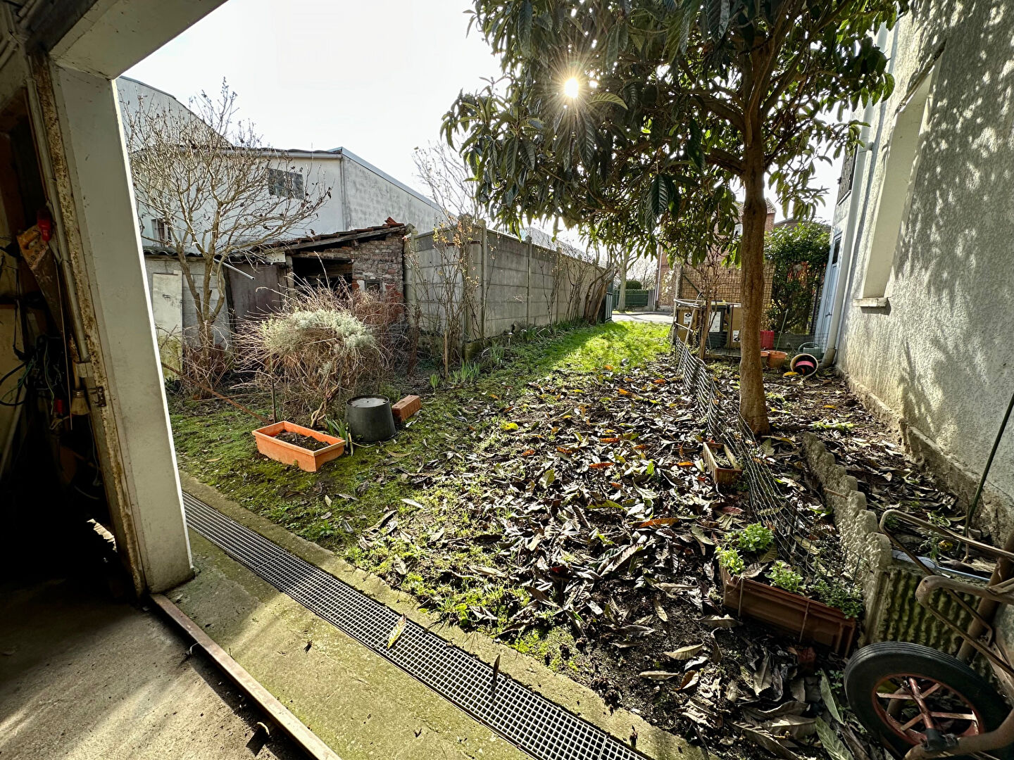 - Sur jardin : Un hangar de 37m2 avec fenêtres, adapté pour activité professionnelle (lot indépendant) et 2 petites remises.