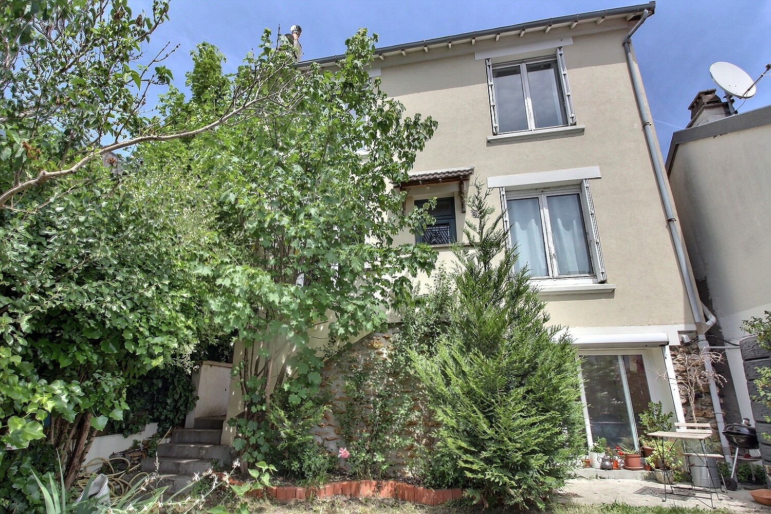 Deux terrasses, et des jardins, calme et lumineuse.