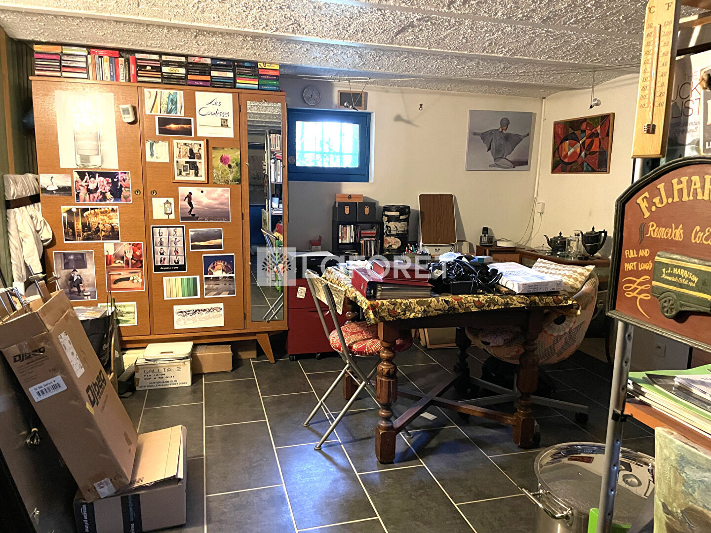 Sous-sol semi - enterré: un bureau, un atelier, une garde-manger, une chaufferie, et une cave.