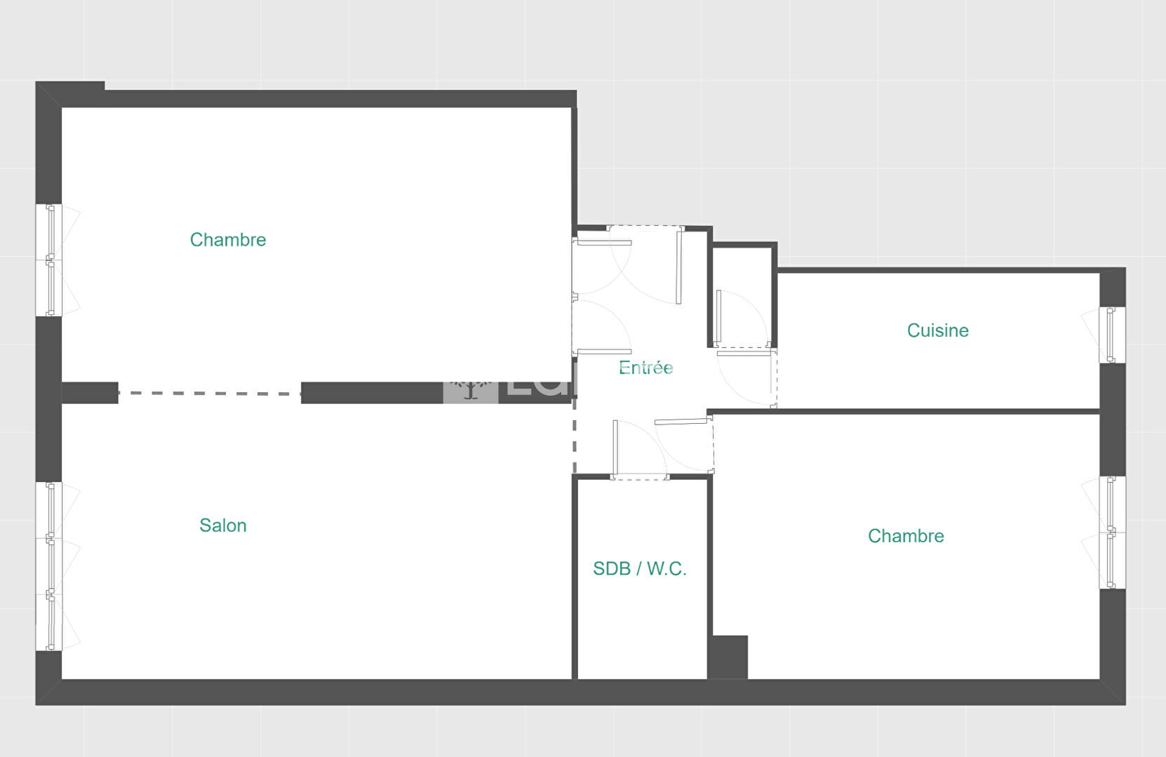 60 m² • 3 pièces • 2 chambres