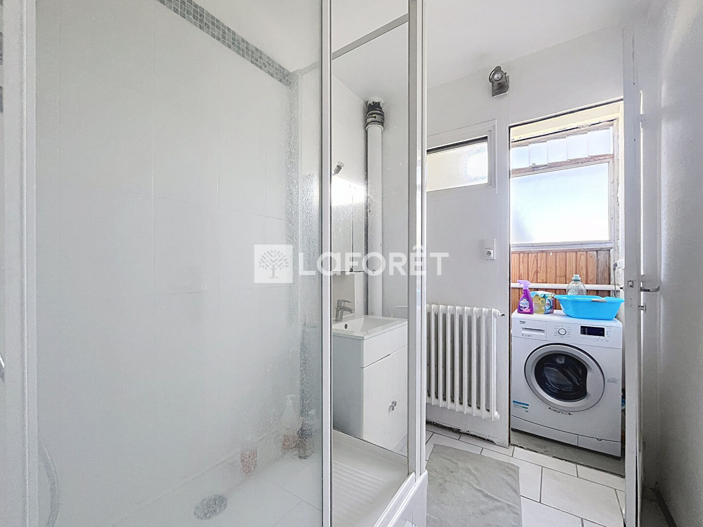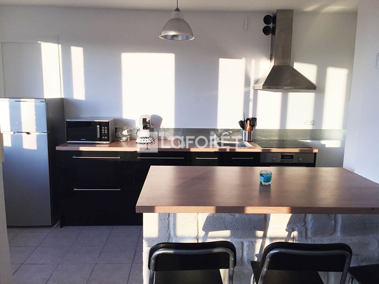 Fenêtres en double vitrage PVC, cuisine équipée, buanderie.
