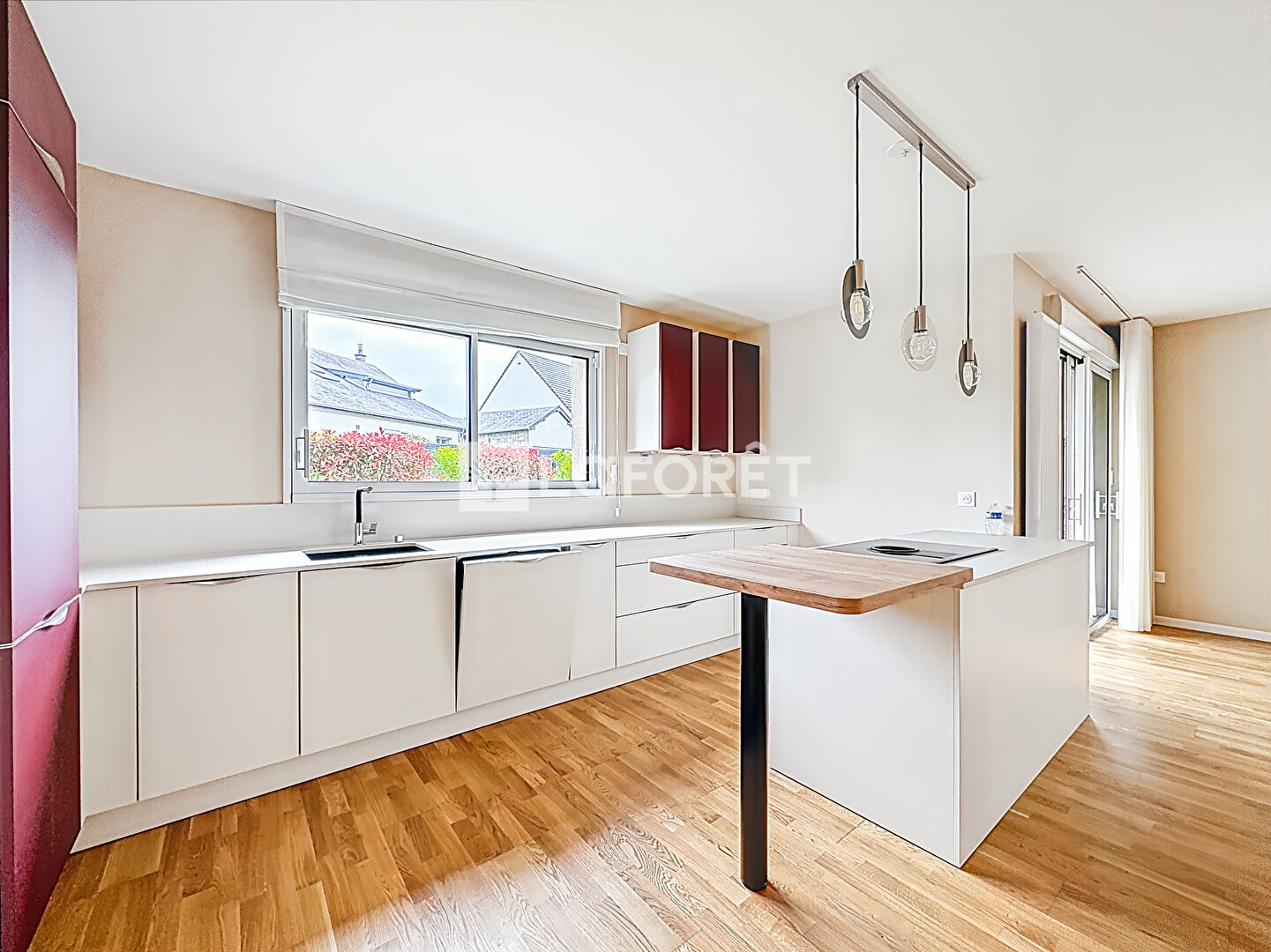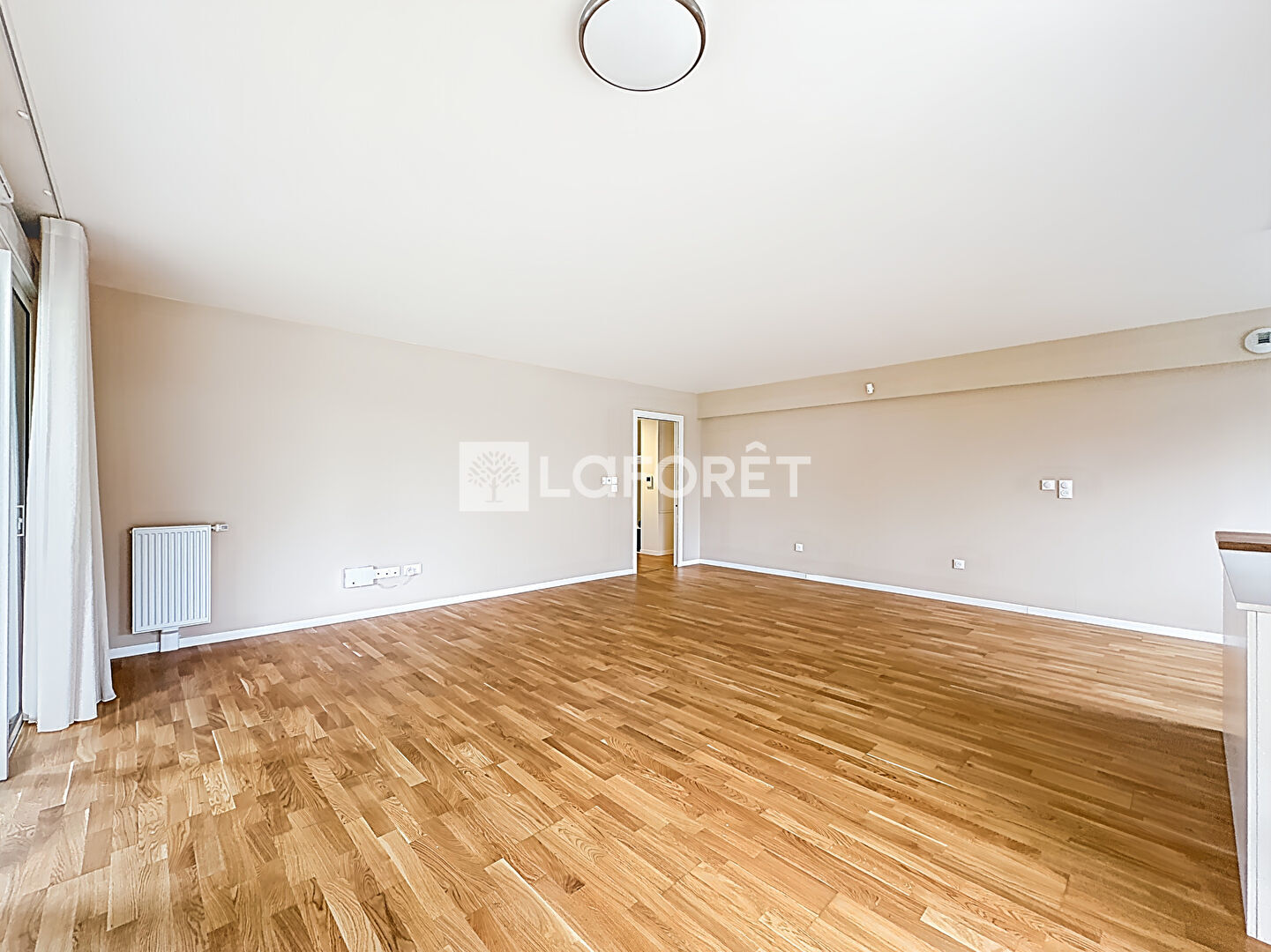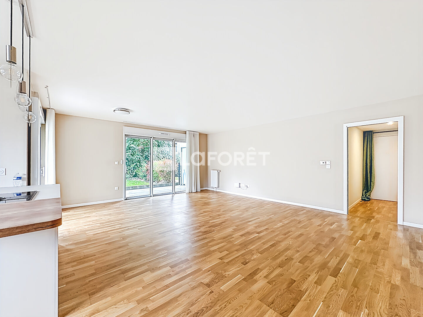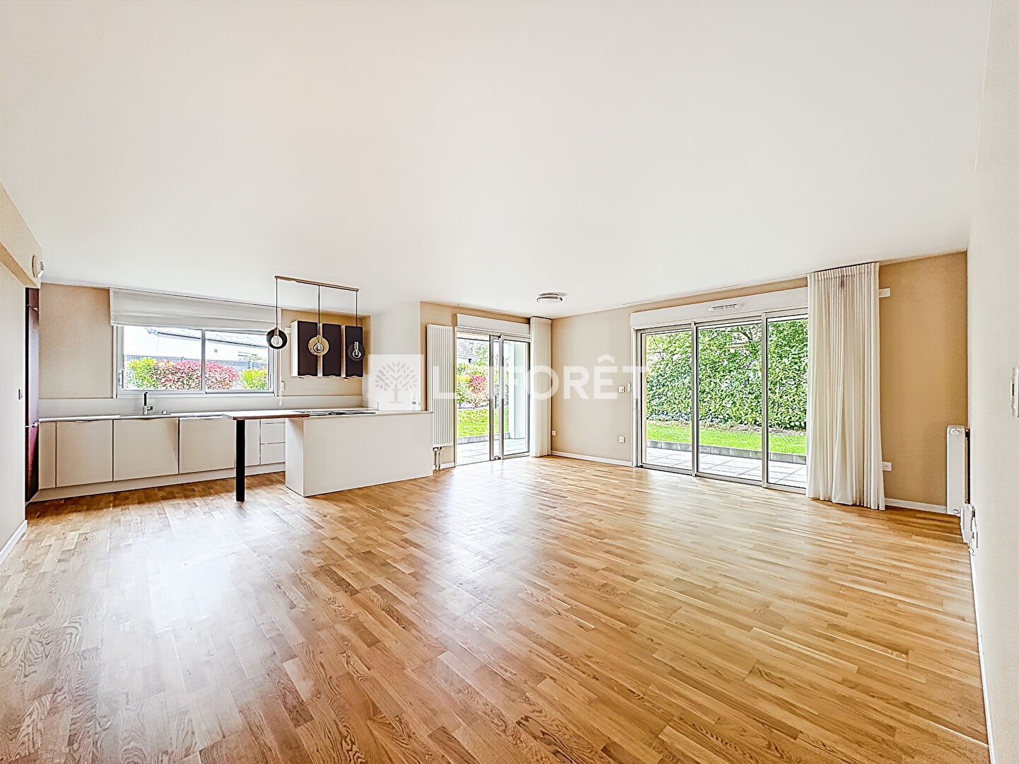 Entrée avec vestiaire, séjour salon avec cuisine aménagée et équipée ouverte, le tout donnant sur une terrasse expo sud-ouest.