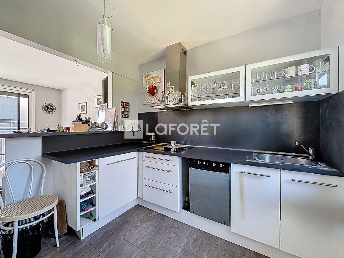 Elle comprend une belle pièce de vie avec cuisine ouverte, 2 chambres avec rangements, une salle de douche refaite et un WC.