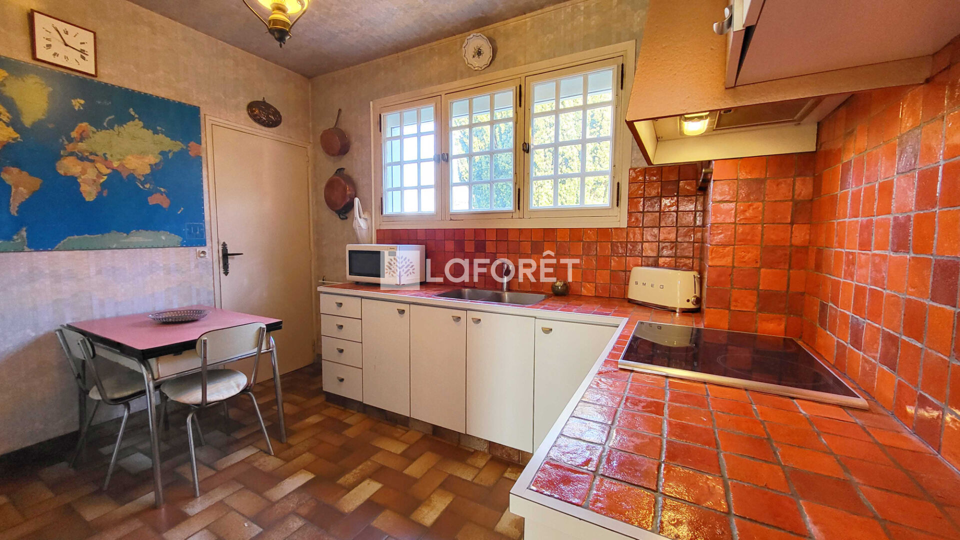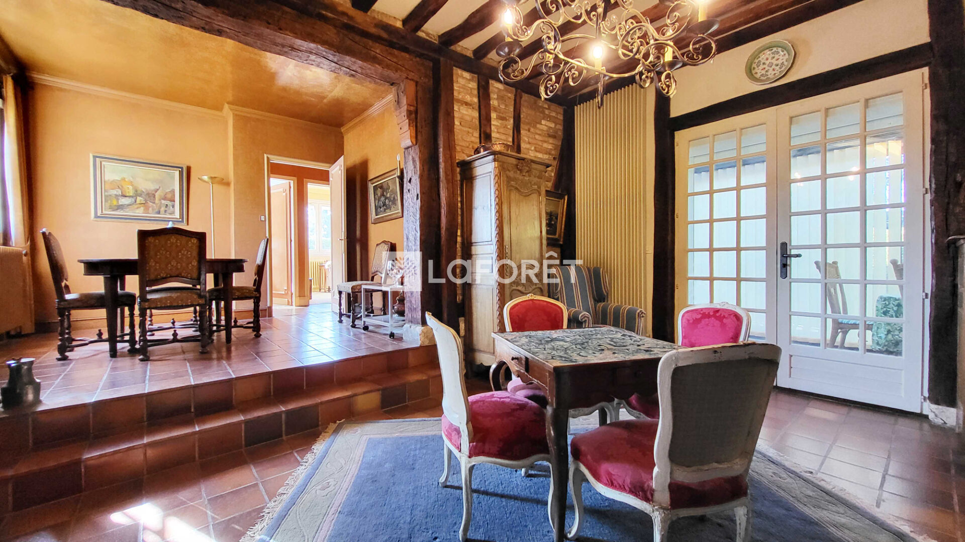 Entièrement de plain-pied, elle se compose d'une entrée, d'une cuisine aménagée, d'un spacieux séjour/salon agrémenté d'une cheminée, ouvert sur une belle véranda, trois chambres, une salle de bain et des WC séparés.