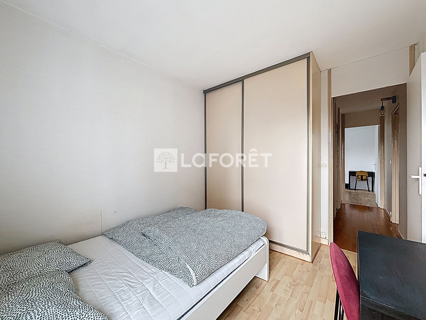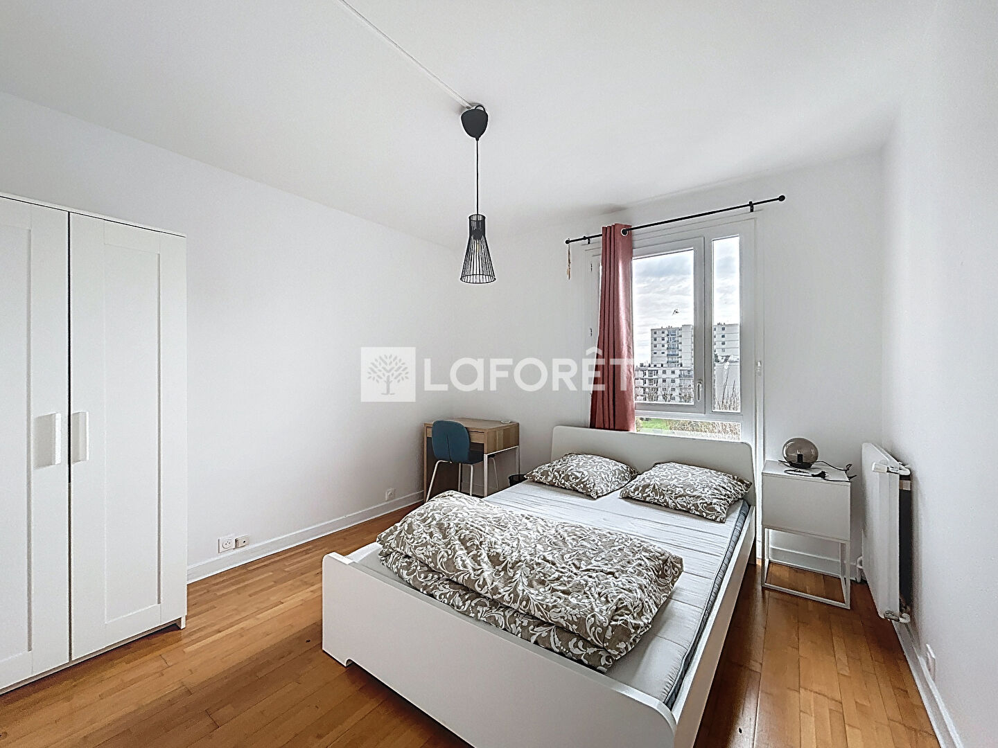 D'un autre, un séjour donnant accès à un balcon, trois chambres équipées d'un lit double, un bureau et une armoire, une salle d'eau et un WC séparé.