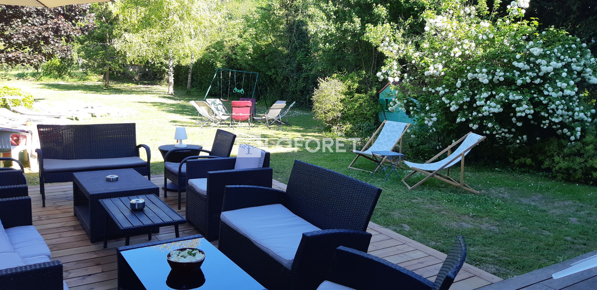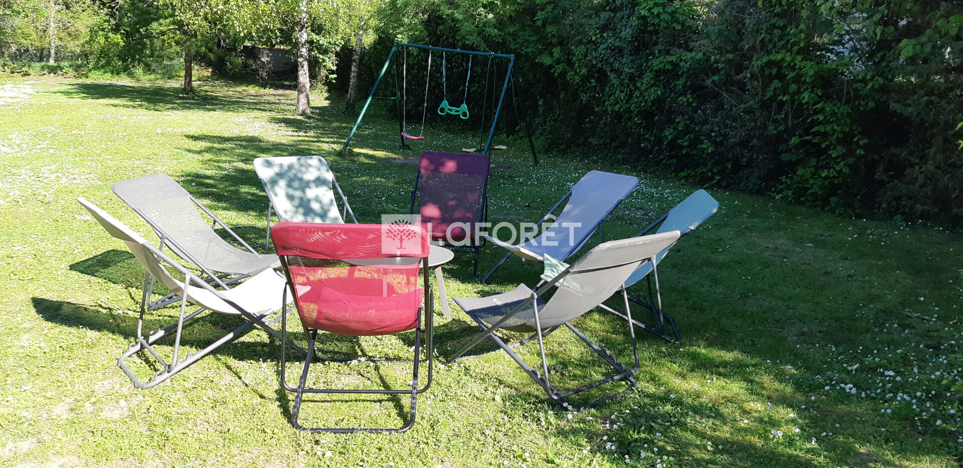 Un jardin entièrement clos et arboré accompagne cette maison.