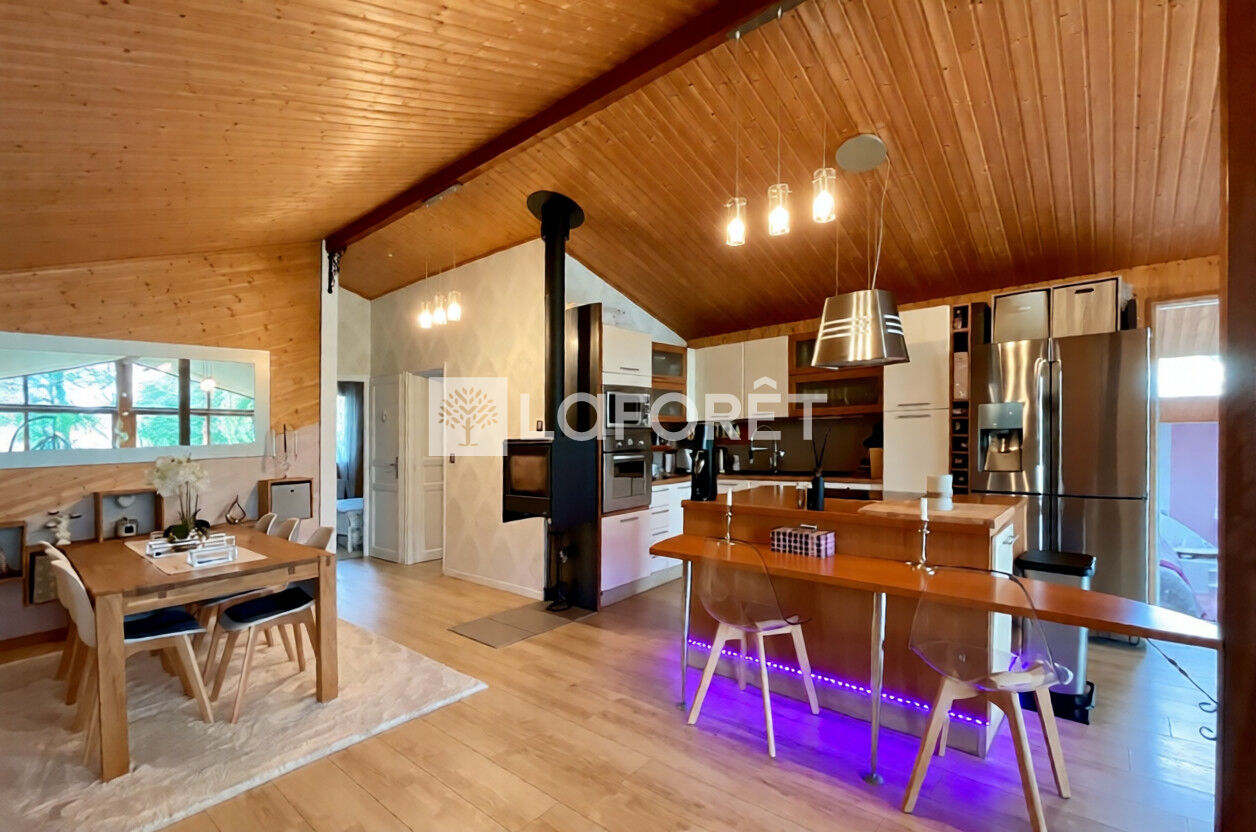 La cuisine ouverte, aménagée et équipée, a été conçue avec soin. Fonctionnelle et moderne, elle offre de nombreux rangements et des équipements de qualité, idéale pour cuisiner et recevoir en toute convivialité.