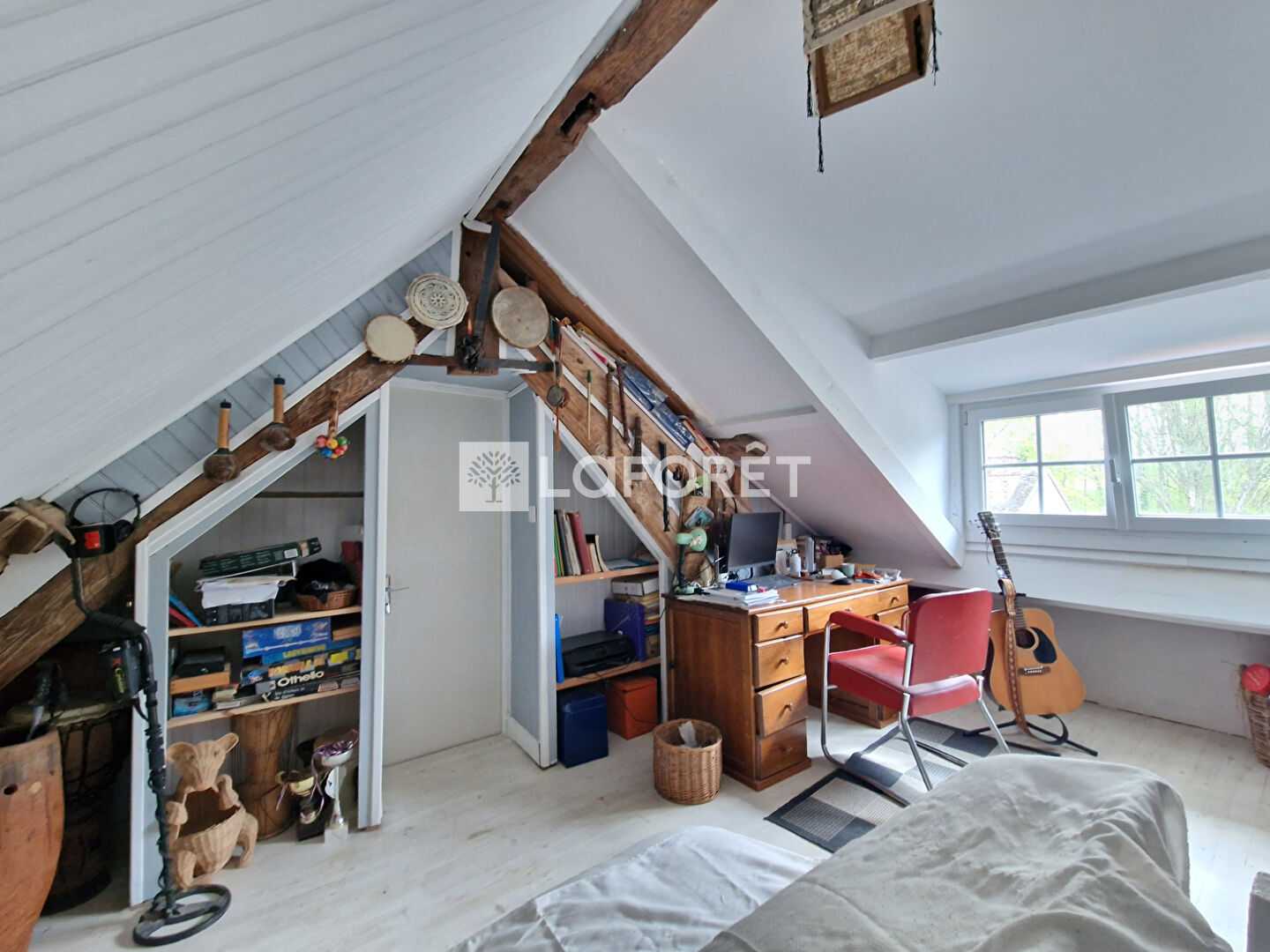 A l'étage, un palier distribuant, un bureau, deux chambres et une salle de bains avec WC.