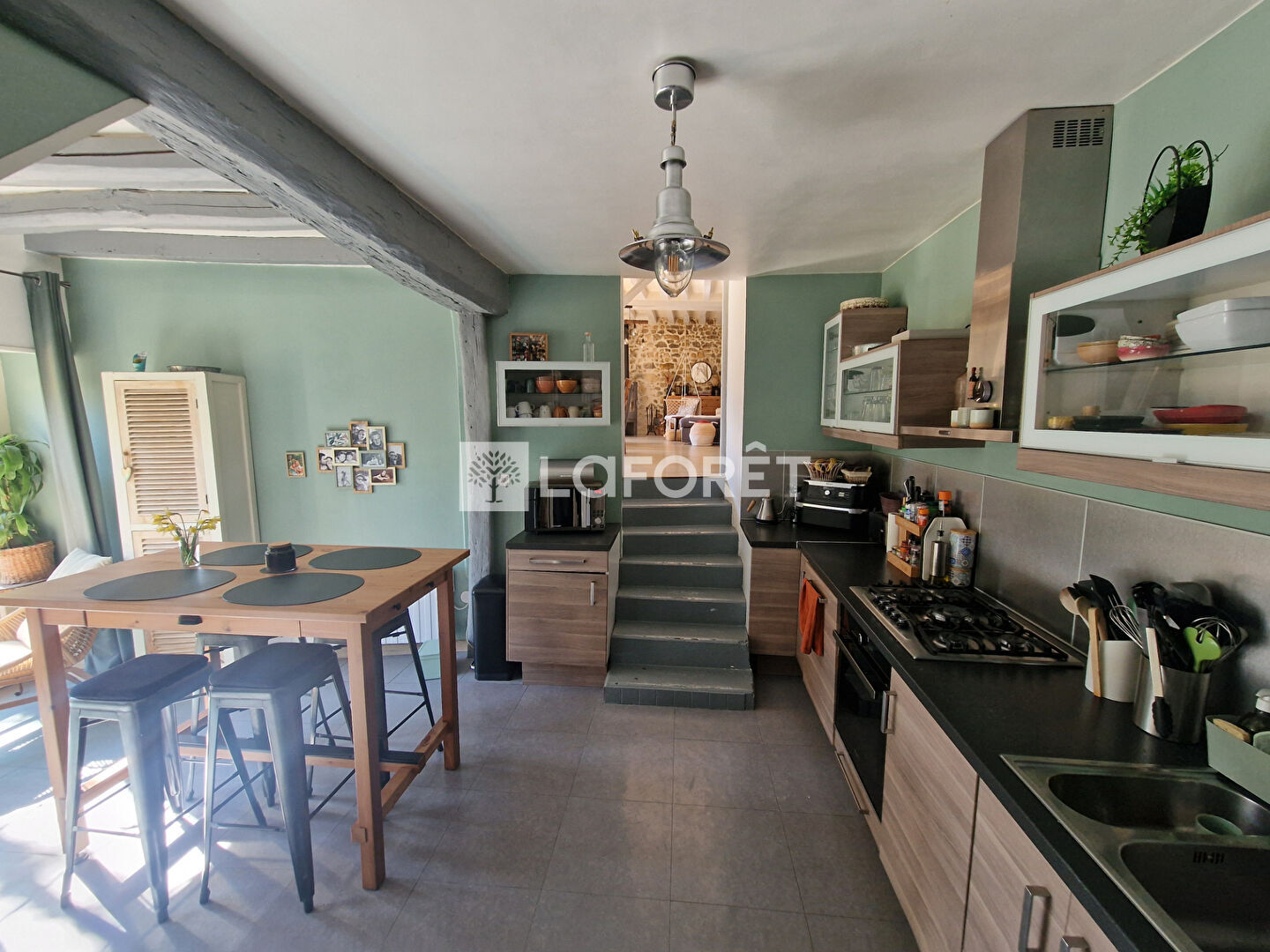 Composée en RDC, d'une vaste entrée avec dressing, d'un WC séparé, d'une cuisine déjeunatoire aménagée et équipée donnant accès à la terrasse, d'un séjour double avec poêle à bois.