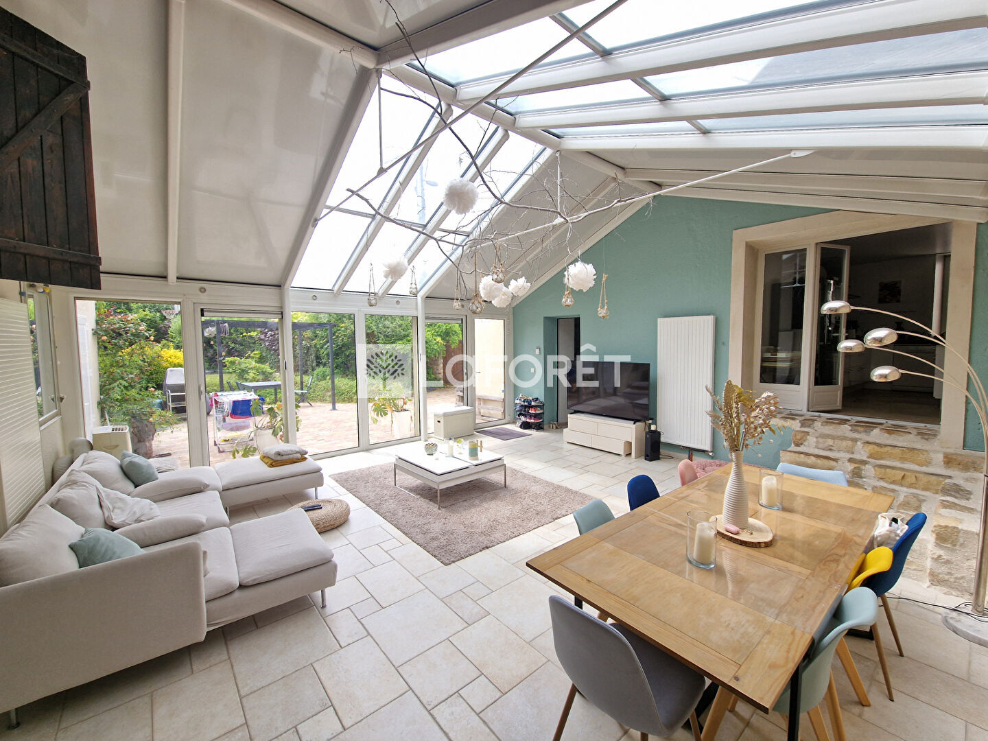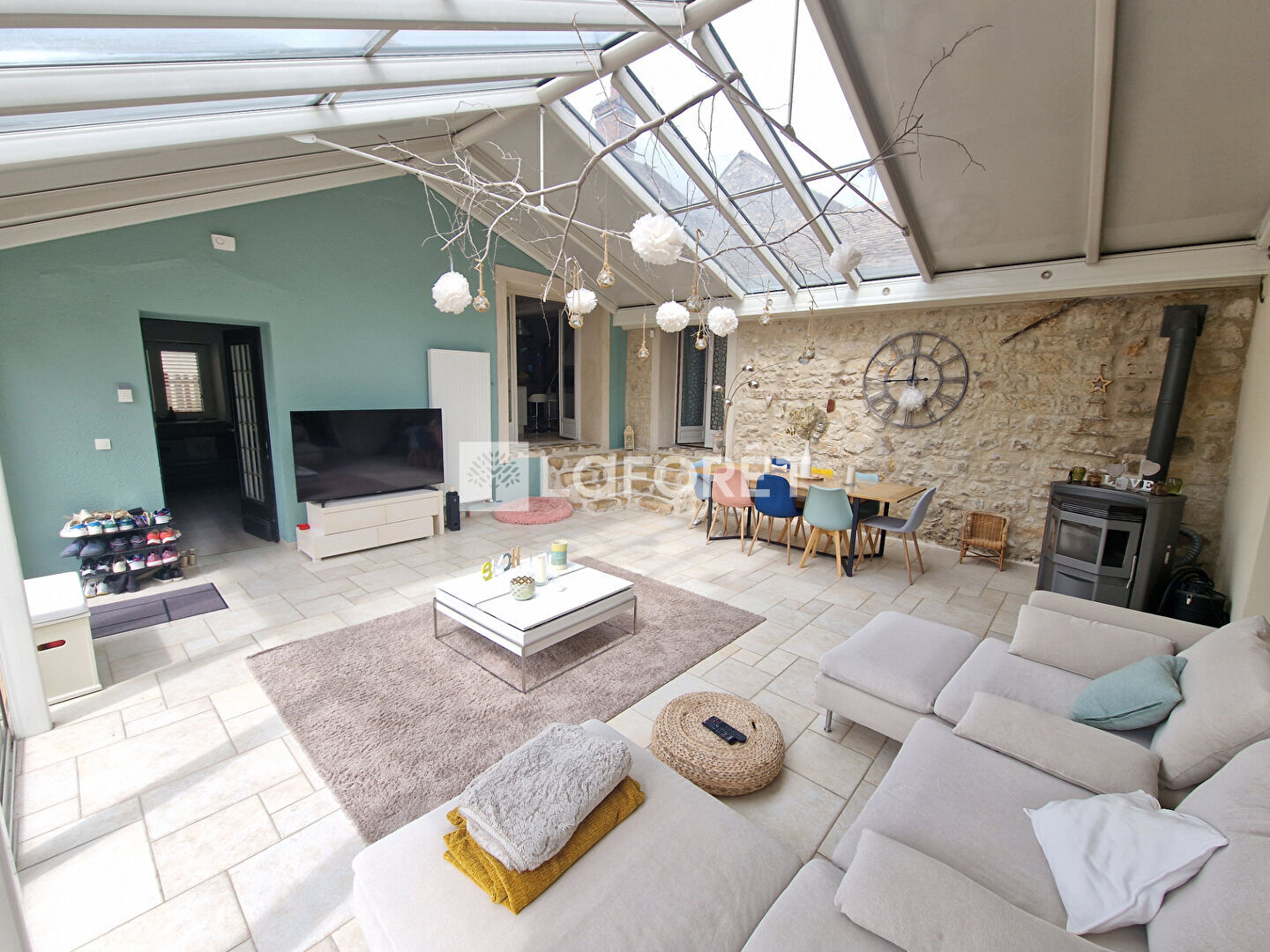 Au rez-de-chaussée,: une spacieuse verrière de 40m² équipé d'un poêle à granulés vous accueille chaleureusement, suivi d'une cuisine aménagée et équipée de 22 m² qui offre convivialité et fonctionnalité. Vous y trouverez également un salon avec cheminée et un bureau avec dressing.