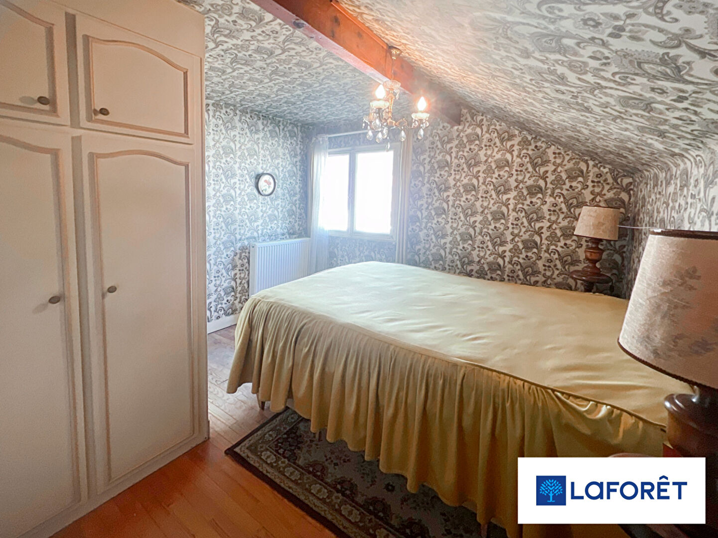 Il s'agit d'une maison traditionnelle de 2 niveaux des années 50. Elle est agencée comme suit : une entrée, un séjour double de 26 m², deux chambres et une cuisine aménagée. Elle offre aussi une salle de bains et deux toilettes. L'étage comprend deux chambres. En complément, elle propose un rangement et une chaufferie. Cette maison indépendante bénéficie de radiateurs fonctionnant au gaz. Elle est en bon état général malgré un intérieur attendant d'être rafraîchi.