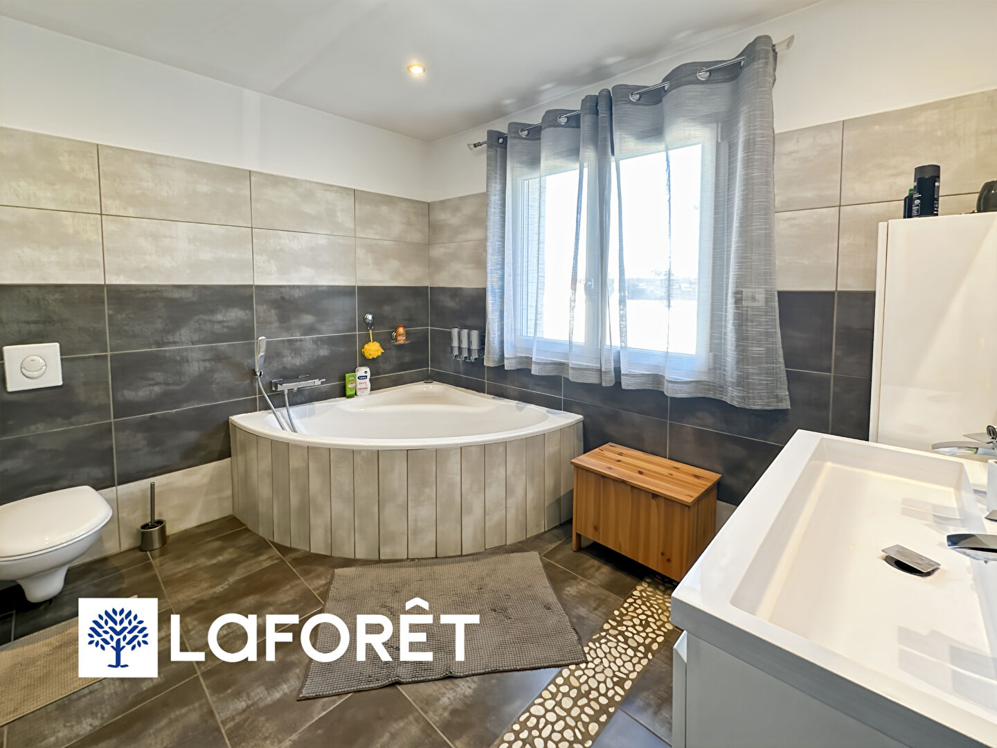 Le chauffage est assuré par une pompe à chaleur et l'eau chaude est produite par un système thermodynamique. La maison est en très bon état, construite en 2015 avec des matériaux de qualité, incluant des fenêtres en PVC double vitrage et des volets roulants électriques.