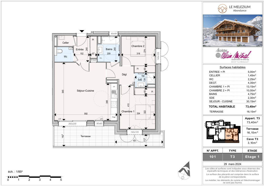 73 m² • 3 pièces • 2 chambres