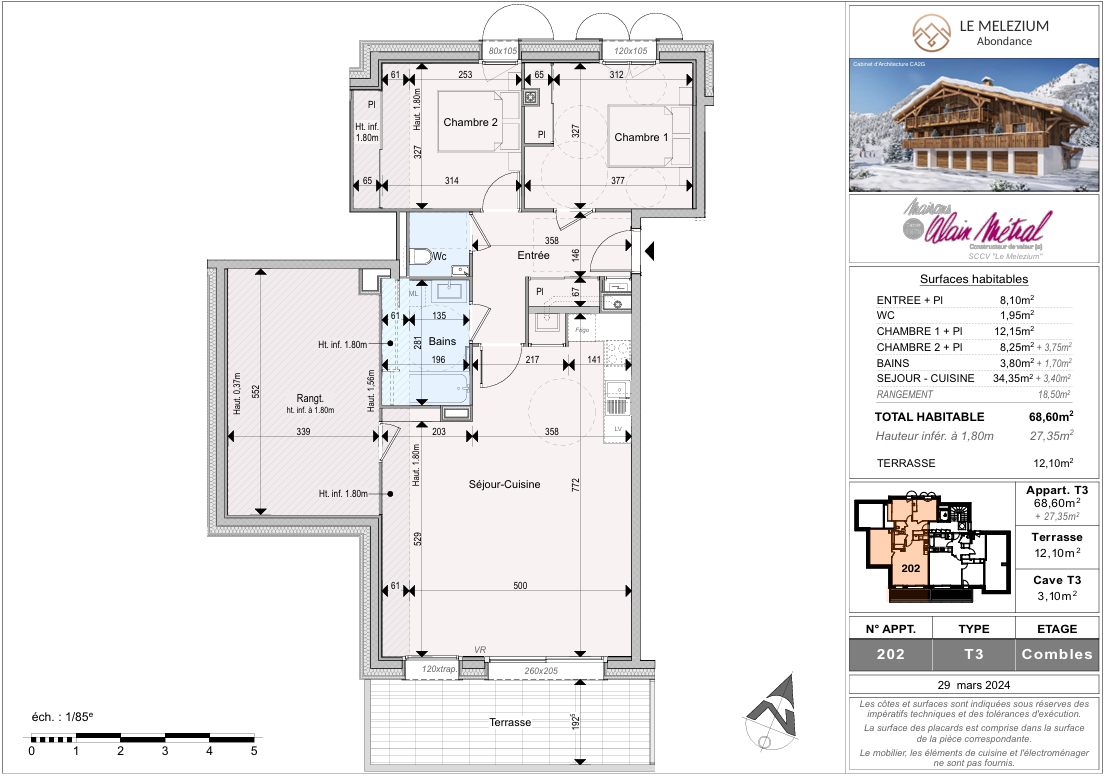 96 m² • 3 pièces • 2 chambres