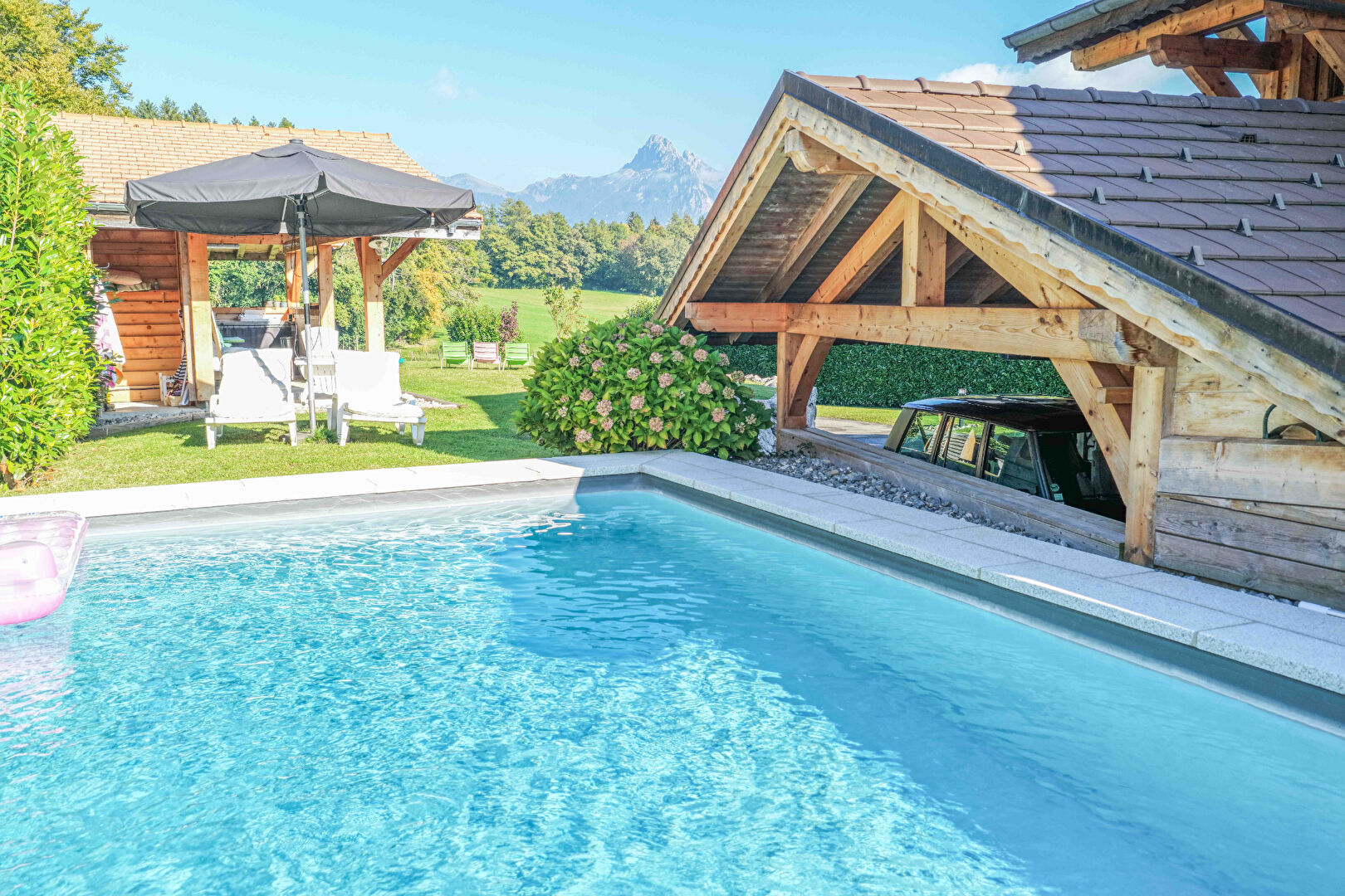 Présence de trois grandes terrasses, d'une lumineuse pièces à vivre de 66m² et d'une piscine chauffée.