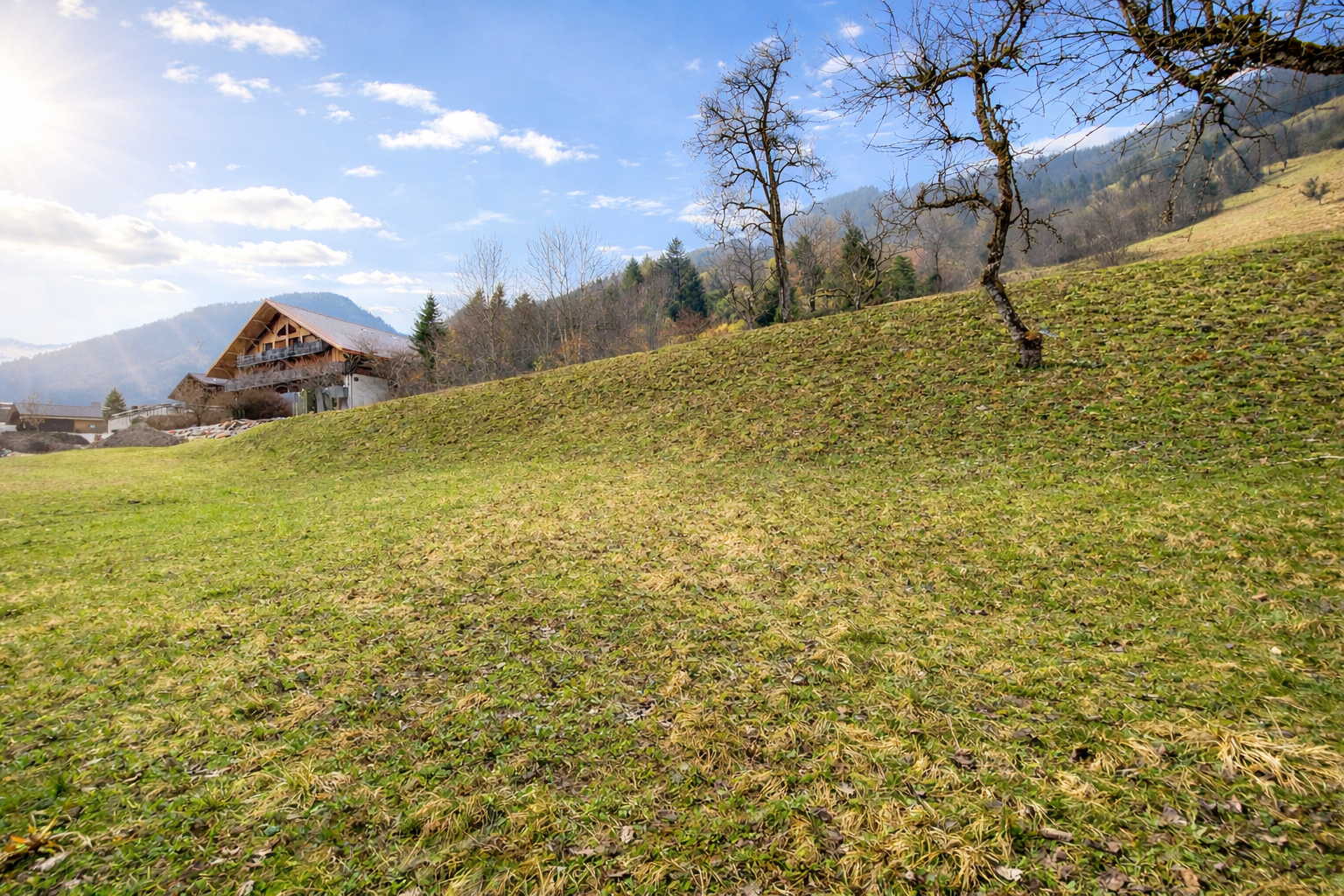 Sur la commune de SEYTROUX 74430, au coeur du village et proche des accès de la vallée d'Aulps et de Morzine dans un environnement calme et dégagée sur les montagnes sur le versant agréable de la commune, un terrain d'une superficie de 950 m² utiles entièrement viabilisé prêt à bâtir en lotissement libre de constructeur pour un superbe projet neuf . Avec accès par une voirie entièrement neuve et facilité sur la parcelle permettant la réalisation d'un chalet de type montagne avec son garage accessible directement depuis la route, possibilité d'un chalet en construction sur 2 niveaux en gardant la pente naturelle du terrain avec un niveau bas semi enterrée et un étage bénéficiant de la vue dégagée en surplomb. Cadre idéal lumineux pour une résidence principale ou secondaire. Multitude de projet possible à définir en mairie, coût réduit grâce à la viabilisation, renseignements auprès de LAFORET MORZINE uniquement.