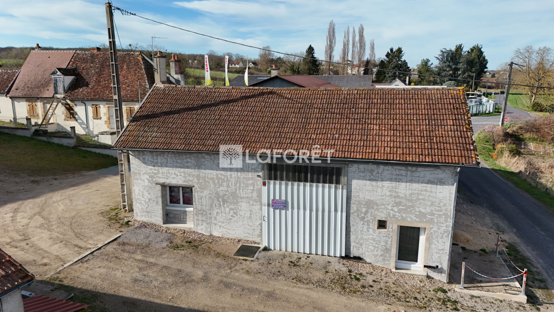 5 MIN de MOULINS, Entrepôt en très bon état, d'environ 80 m2 au sol avec sanitaires, cuisine/bureau, quai de chargement et espace de stockage, cour, sur une parcelle d'environ 300 m2.