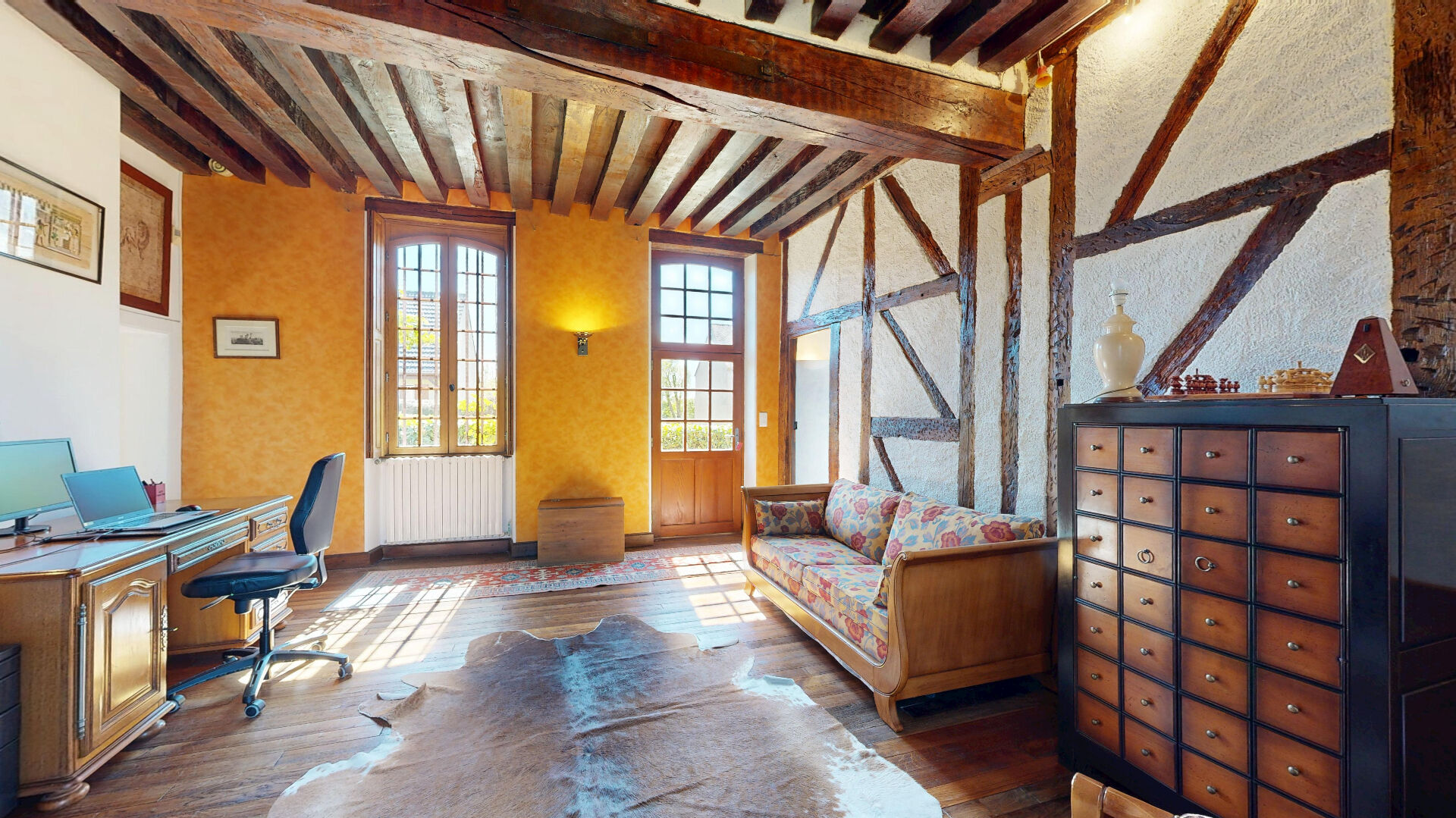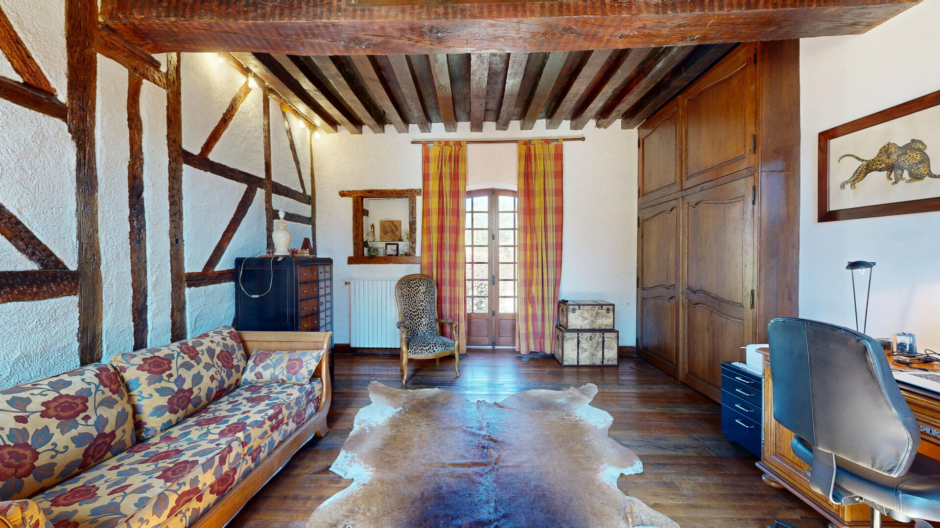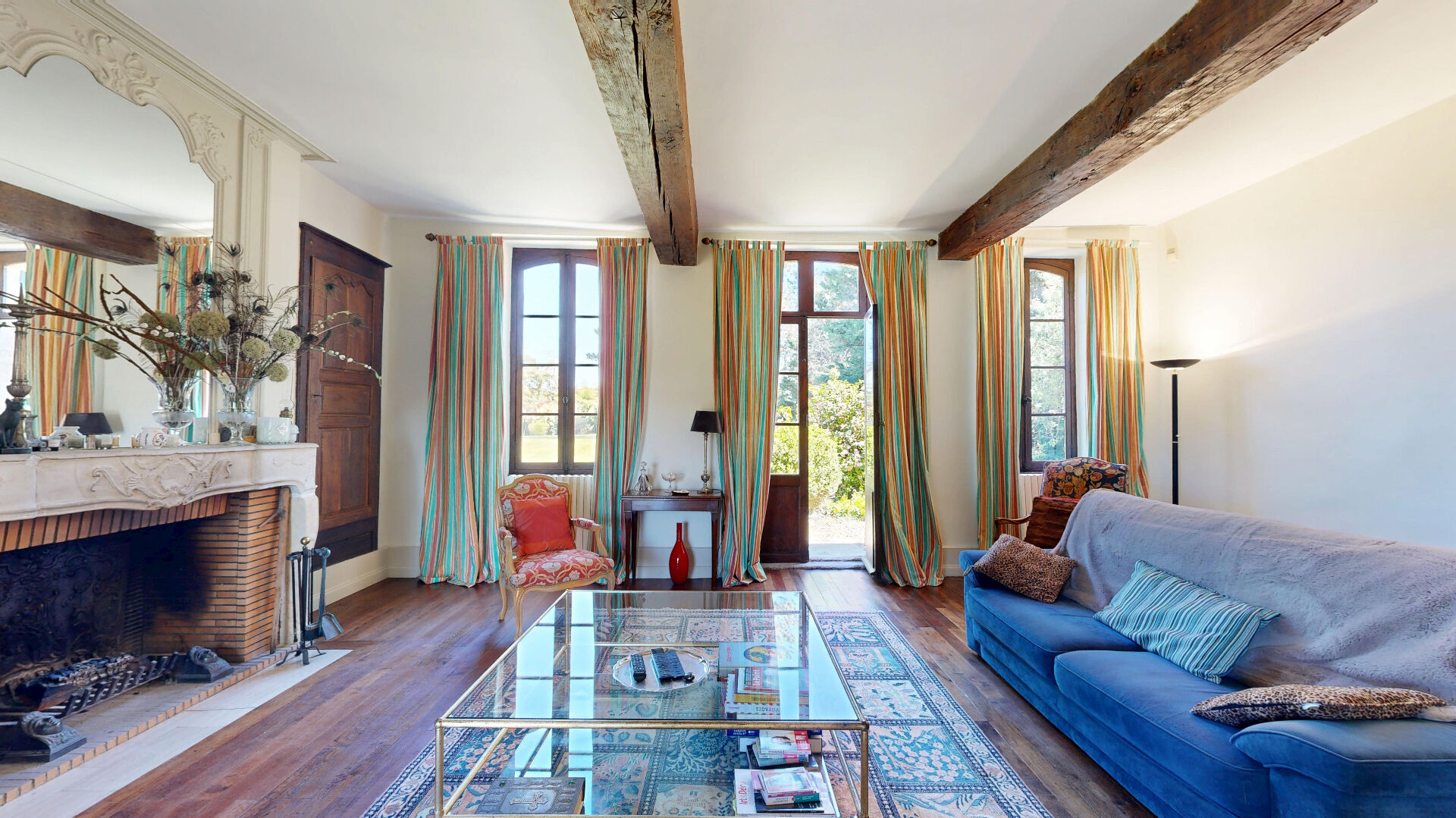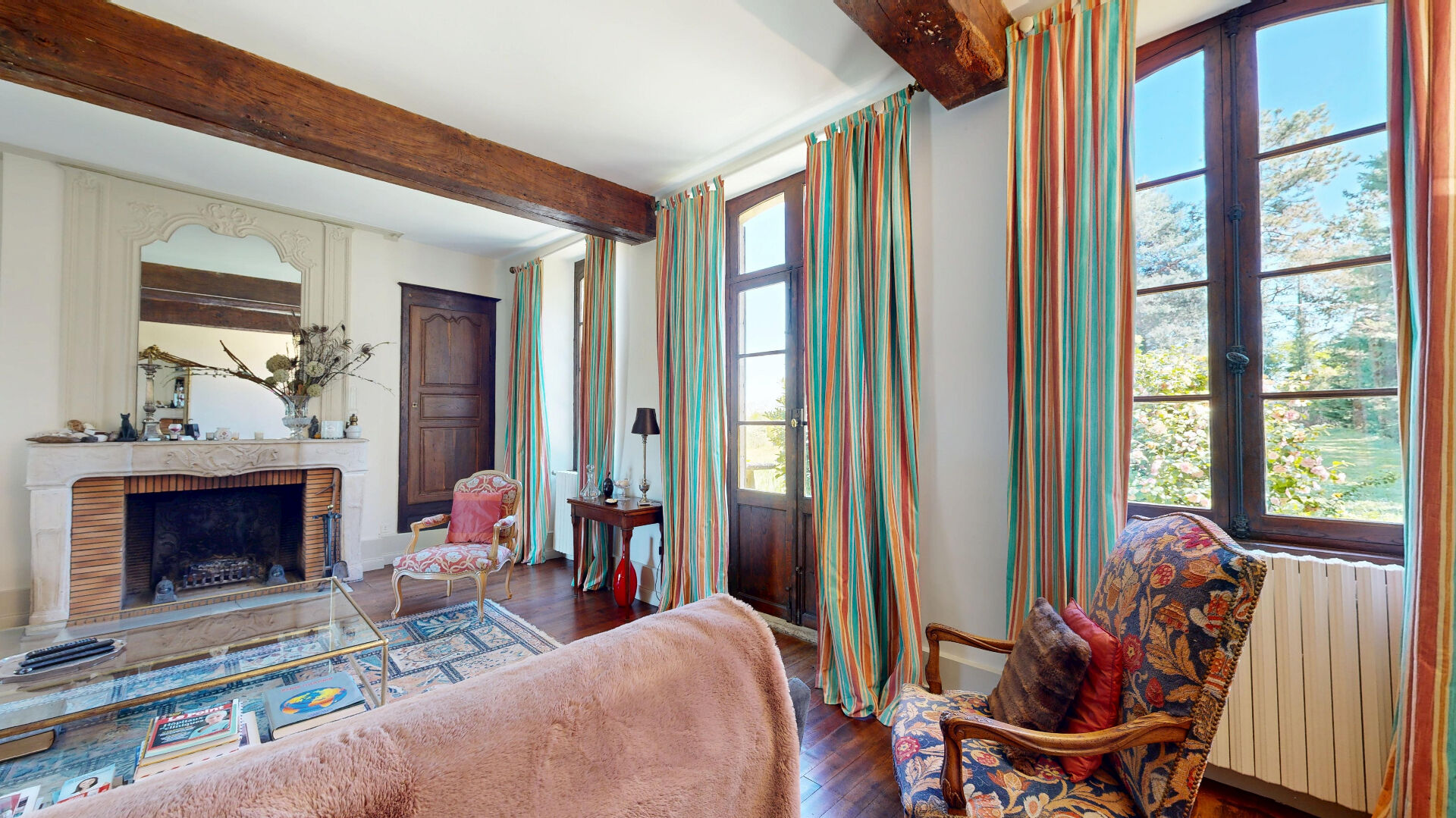 La maison principale, en grande partie de plain-pied, bénéficie d'une luminosité remarquable et d'une sortie sur l'extérieur de quasiment toutes les pièces. Elle a su préserver ses éléments anciens : cheminées, plafonds à la française, pans de bois et parquets, qui renforcent son caractère.