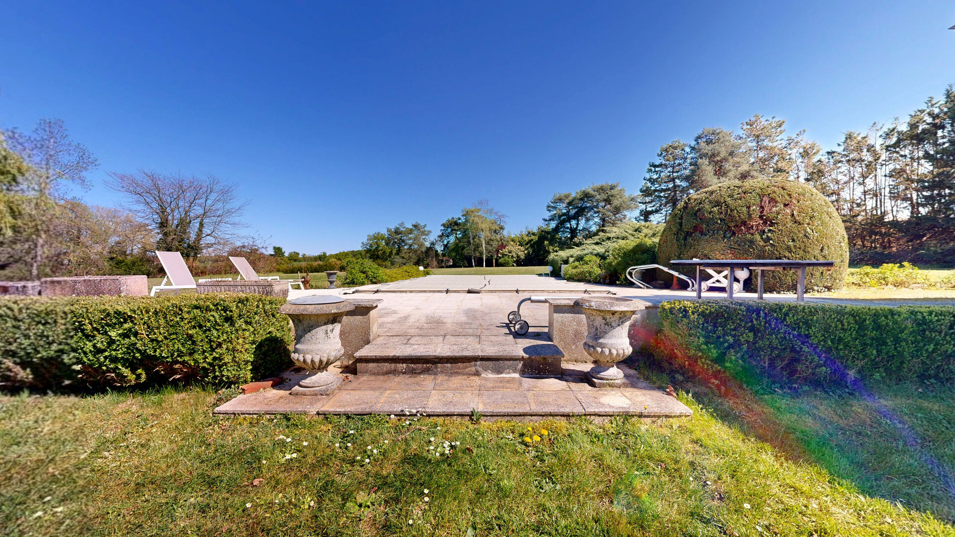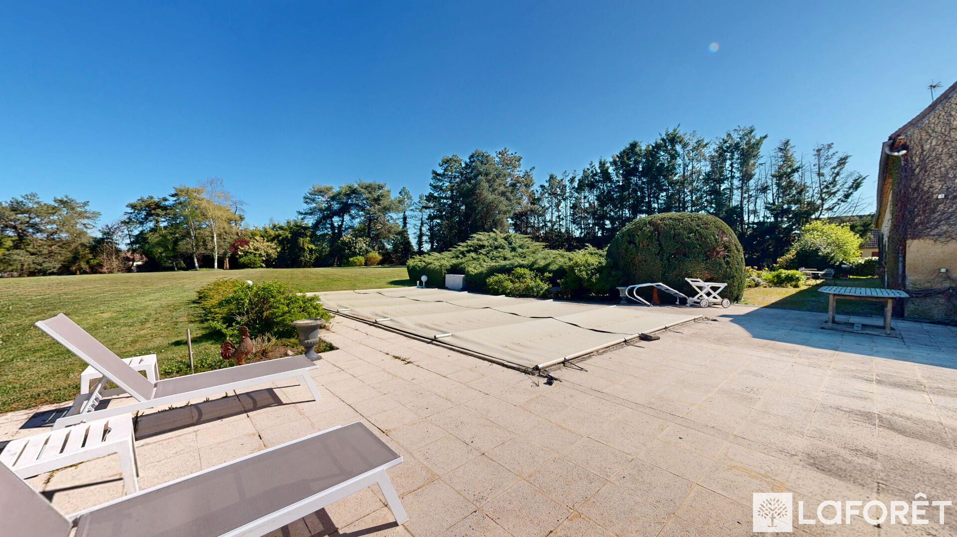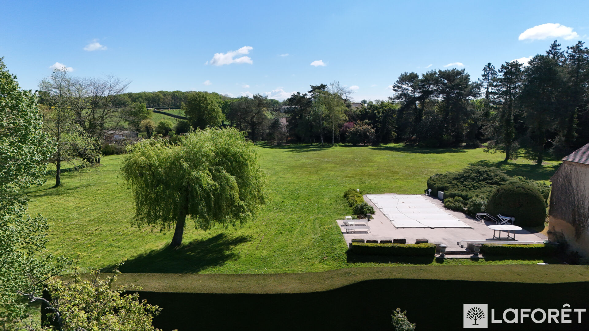 À l'extérieur, un parc paysagé d'environ 1,7 hectare avec des arbres centenaires offre un cadre verdoyant et intime, agrémenté d'une piscine avec système de filtration récent au sel.
