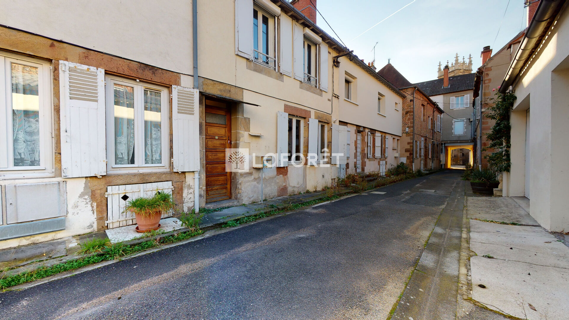Ensemble immobilier situé en centre ville de Moulins comprenant un immeuble de caractère en façade avec porche d'entrée menant à une impasse donnant sur plusieurs petits immeubles. Au total : 14 logements, cour, 6 garages. Rapport annuel potentiel : environ 80 000 euros
