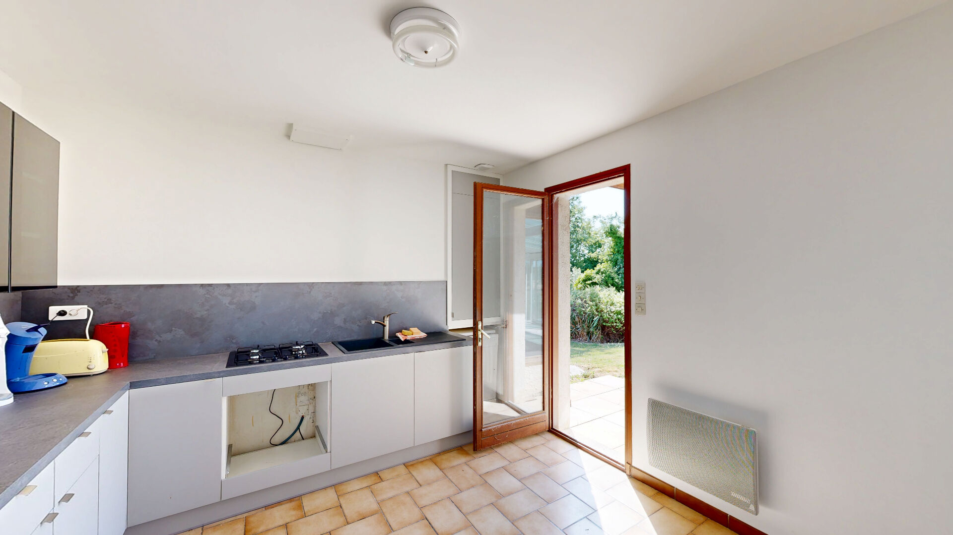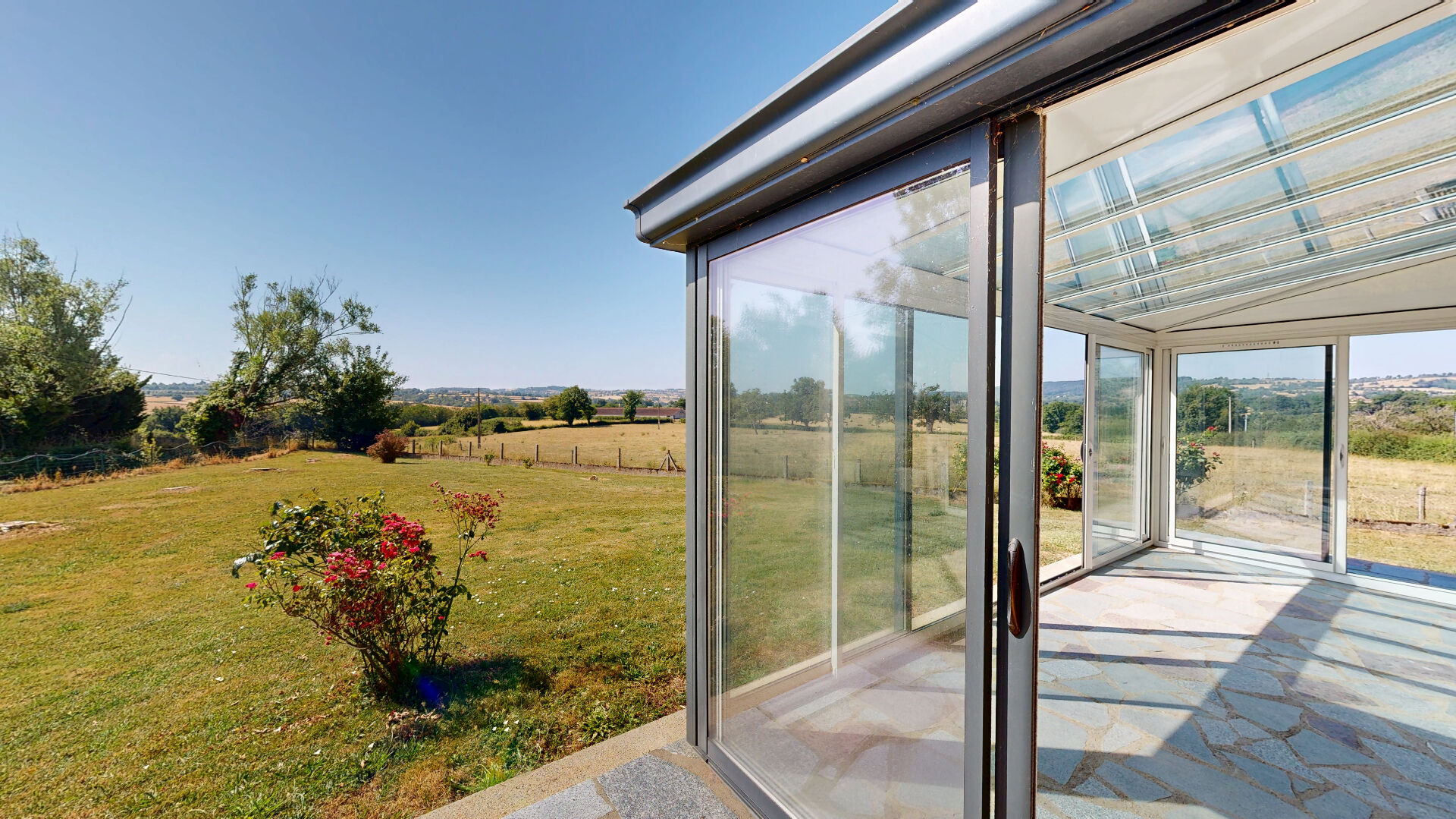 Située dans un environnement calme et verdoyant, elle se compose d'une entrée avec placard, d'une pièce de vie lumineuse avec poêle à bois, regroupant salon séjour, cuisine ouverte aménagée, véranda.