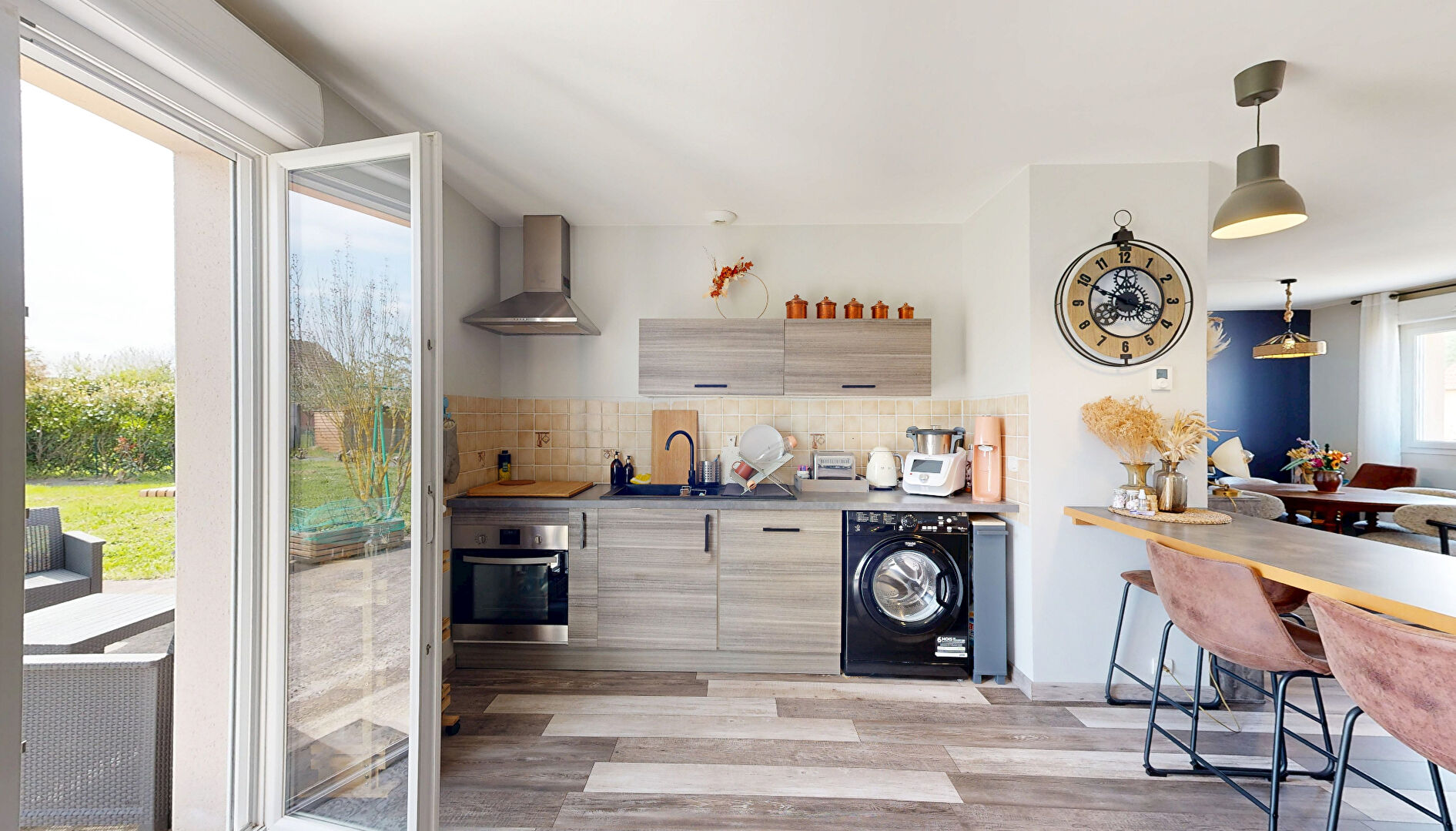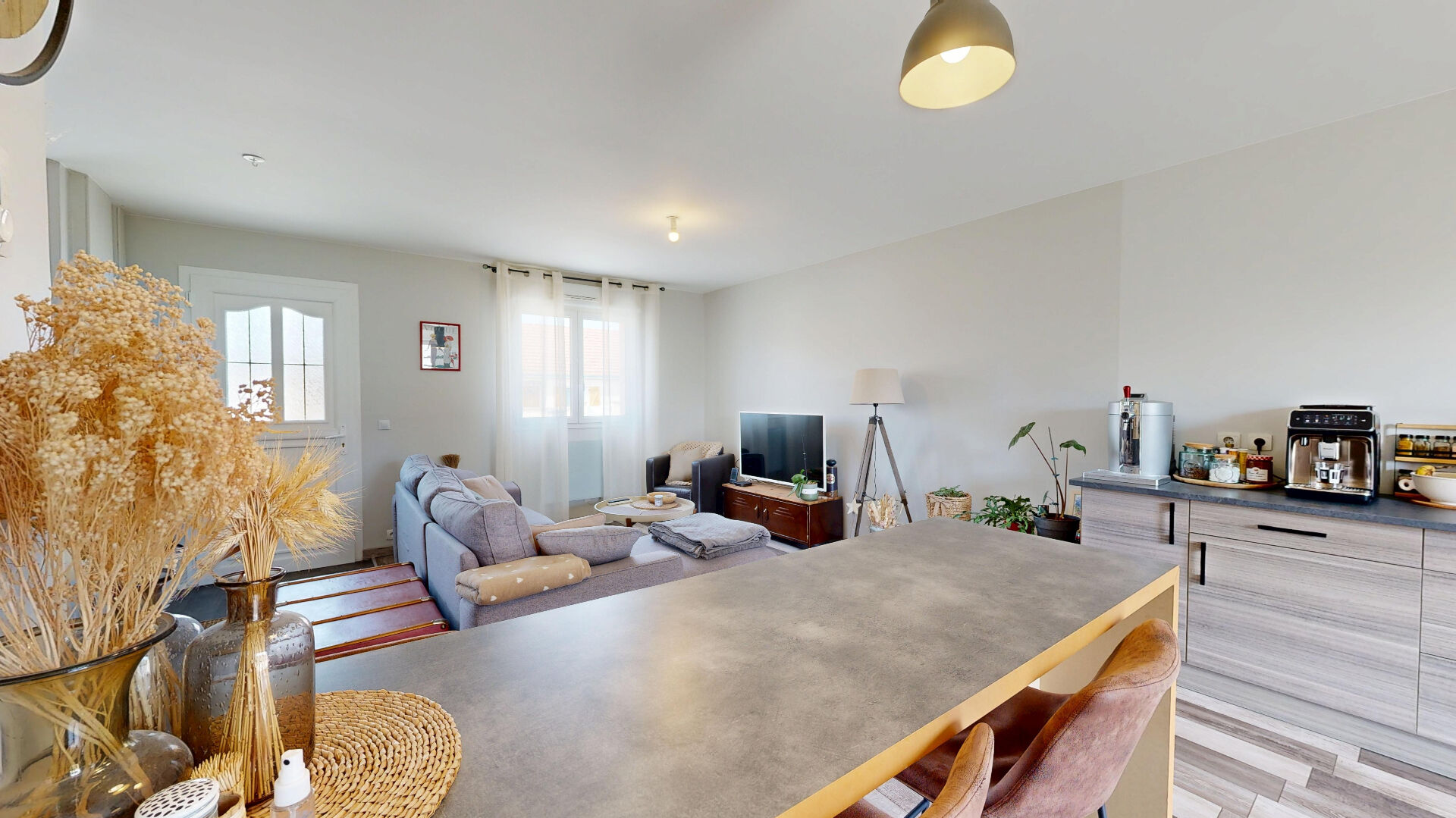 Découvrez cette agréable maison de plain-pied. Elle se compose d'un bel espace de vie lumineux avec salon-séjour et cuisine ouverte, de deux chambres, d'une salle de bains et de WC indépendants.
