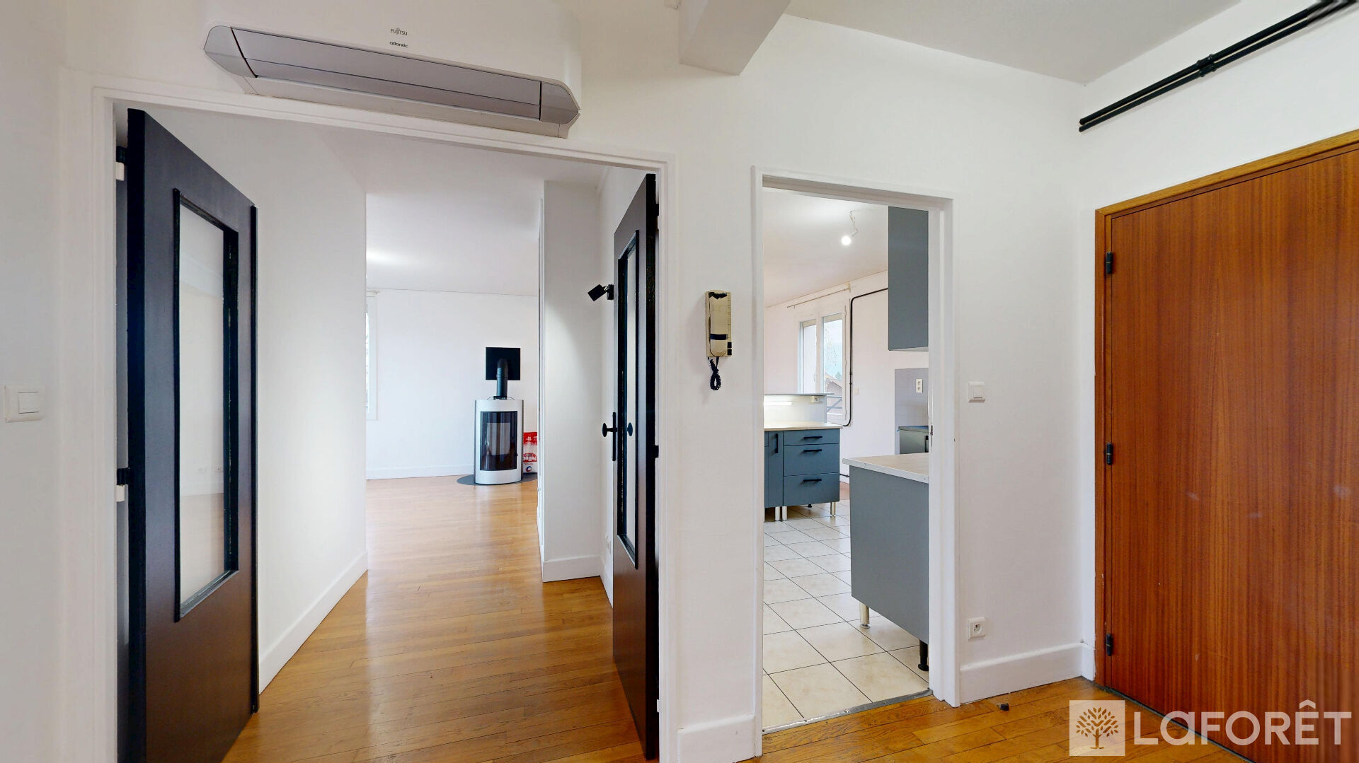 Les + : faibles charges de copropriété, poêle à granulés, climatisation réversible dans la pièce de vie, fenêtres PVC double vitrage et volets roulants électriques, jardin et garage.