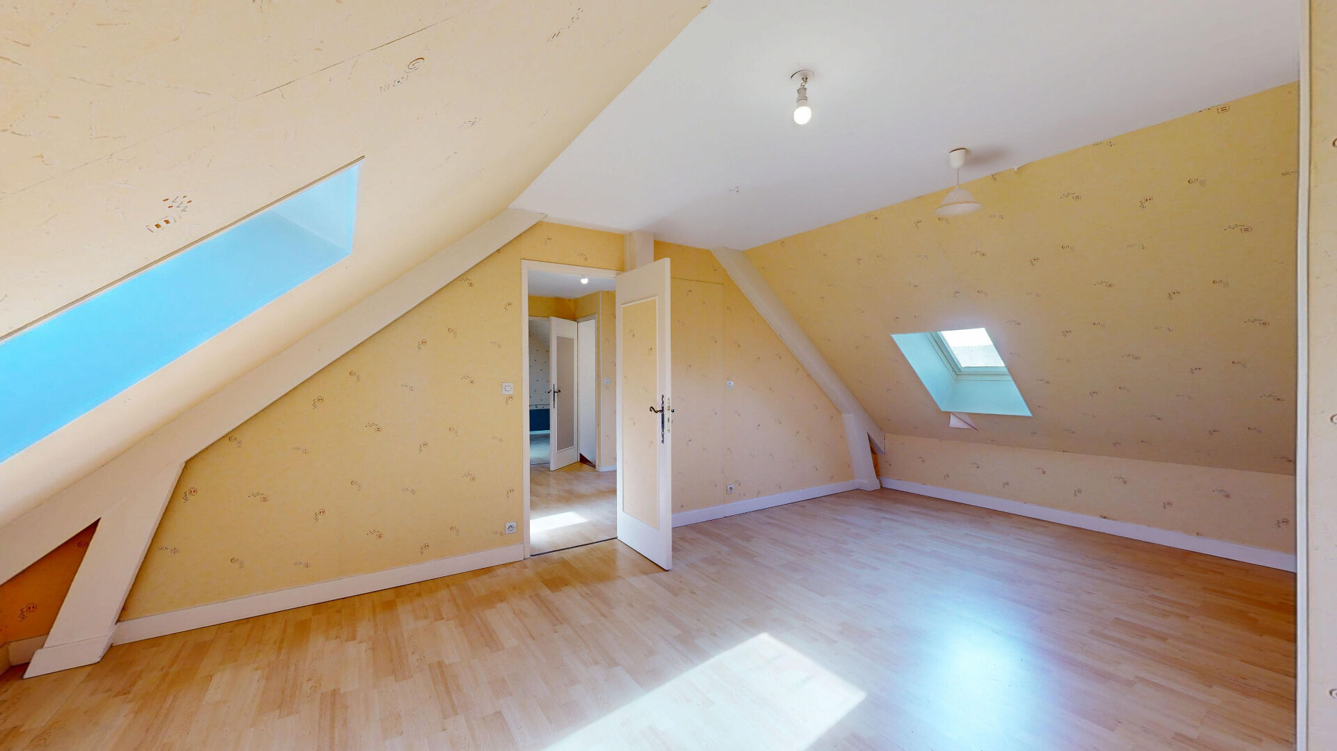 À l'étage, vous trouverez trois chambres, une salle d'eau, un wc, une mezzanine, ainsi qu'un grenier aménageable, offrant la possibilité de créer une cinquième chambre.