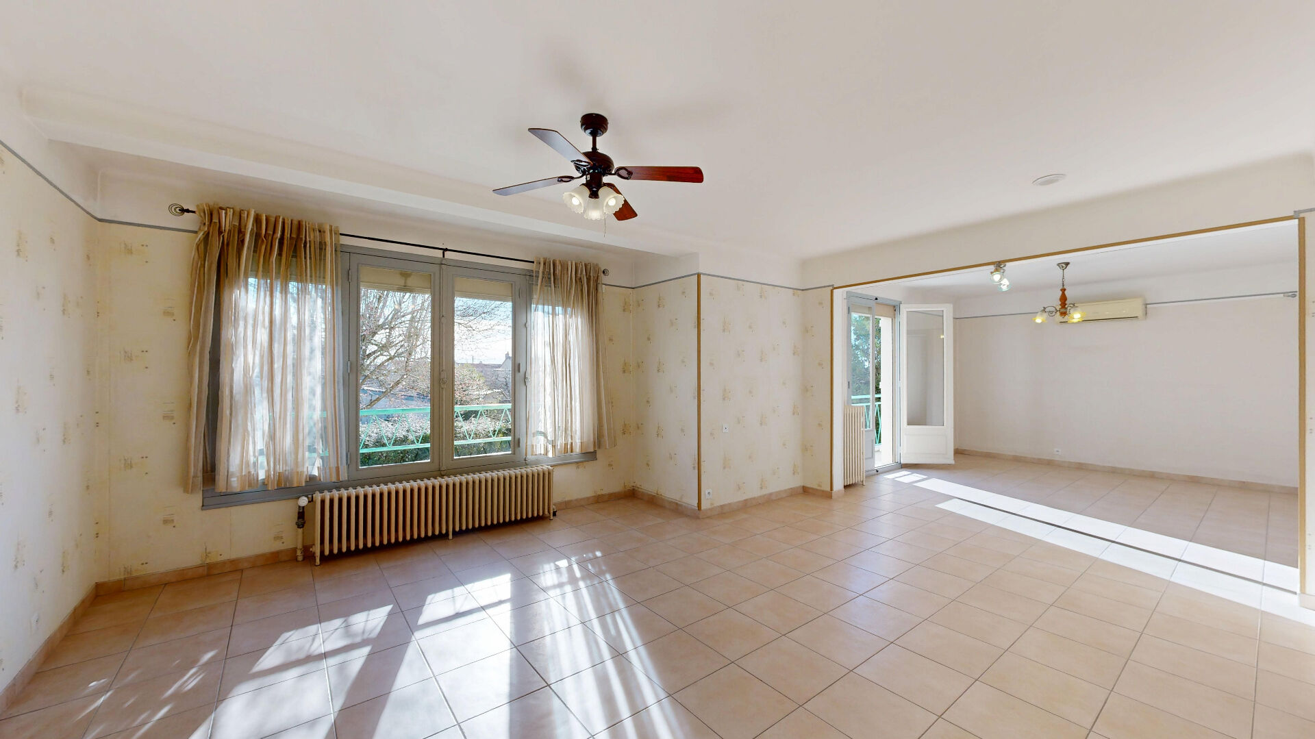 RDC : belle pièce de vie de 39 m2 exposée plein sud avec balcon et climatisation.
