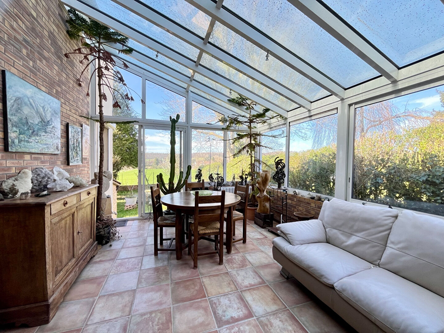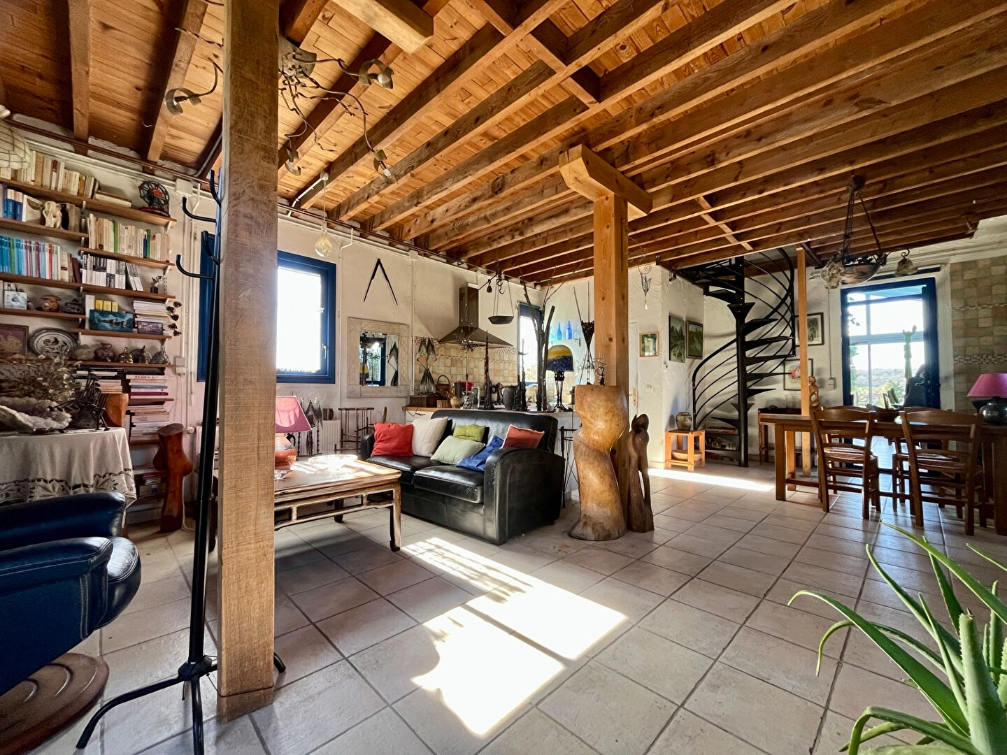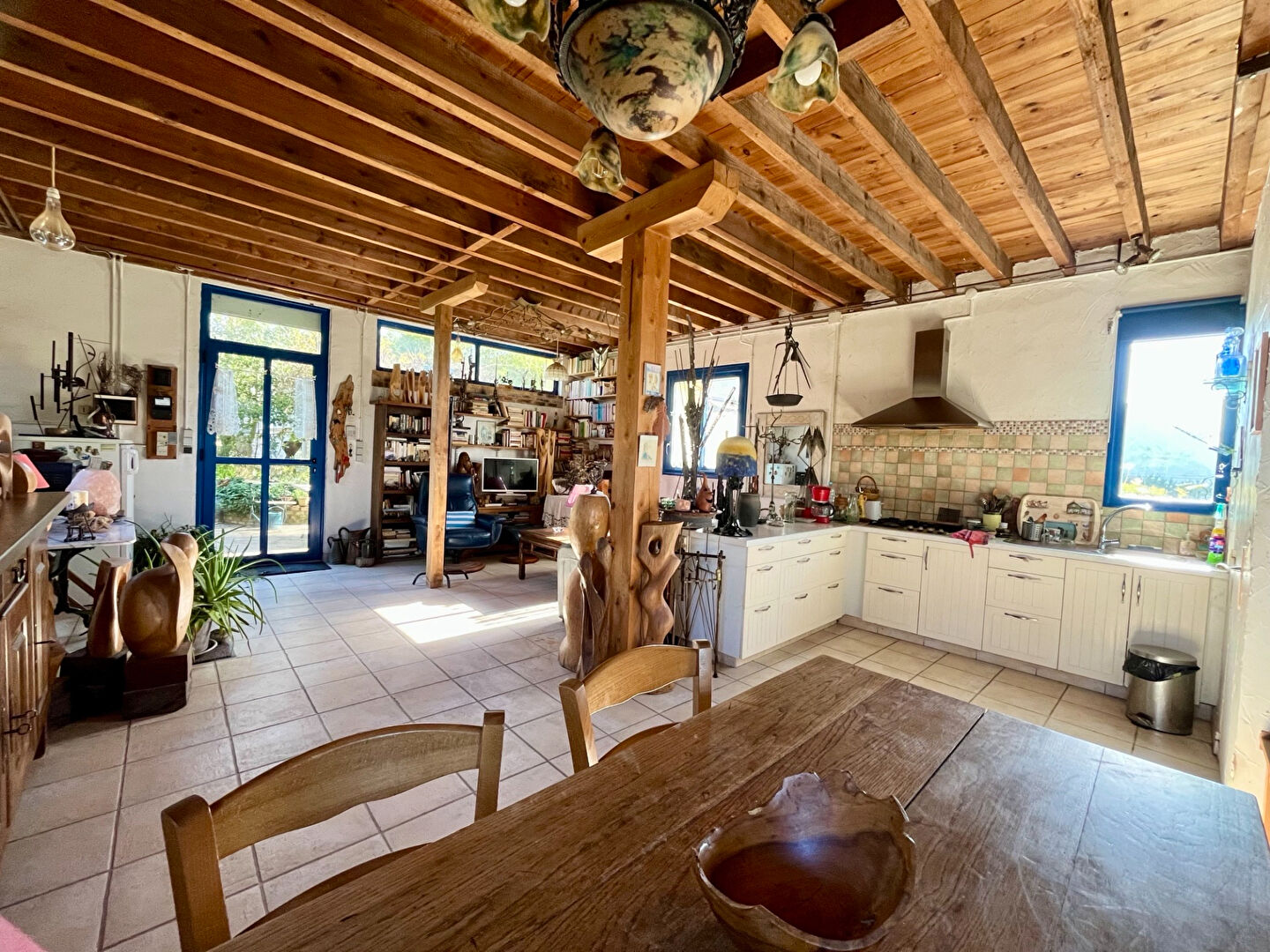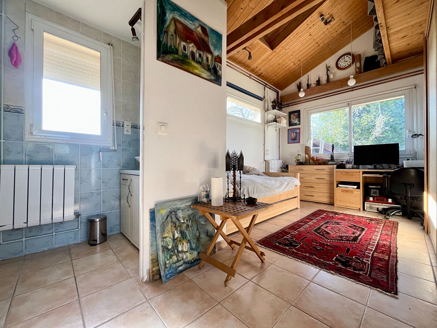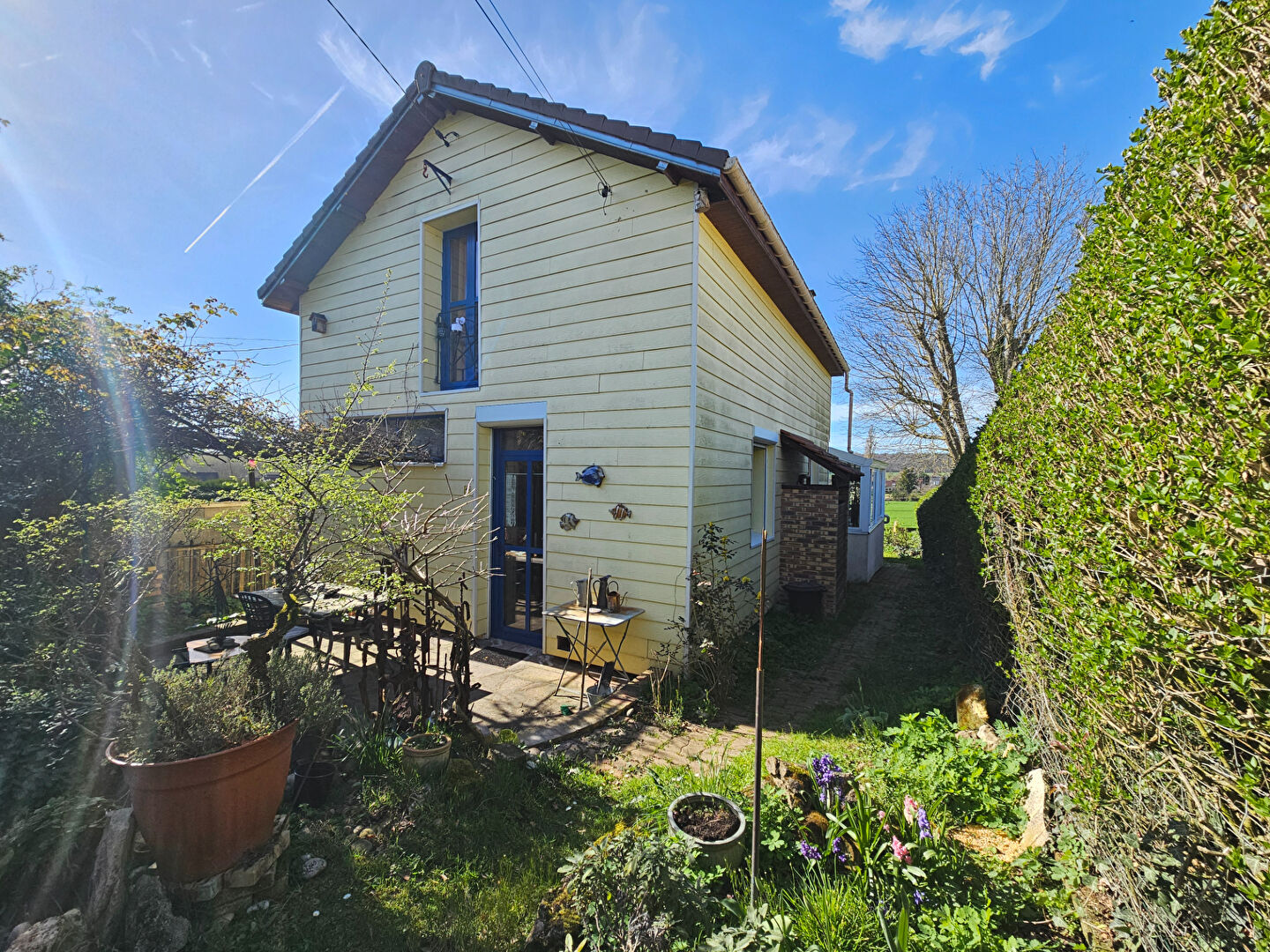 Pour compléter cette maison un jardin clos et arborée avec préau , terrasse, et atelier très lumineux ( idéal pour un bricoleur ou artiste ).