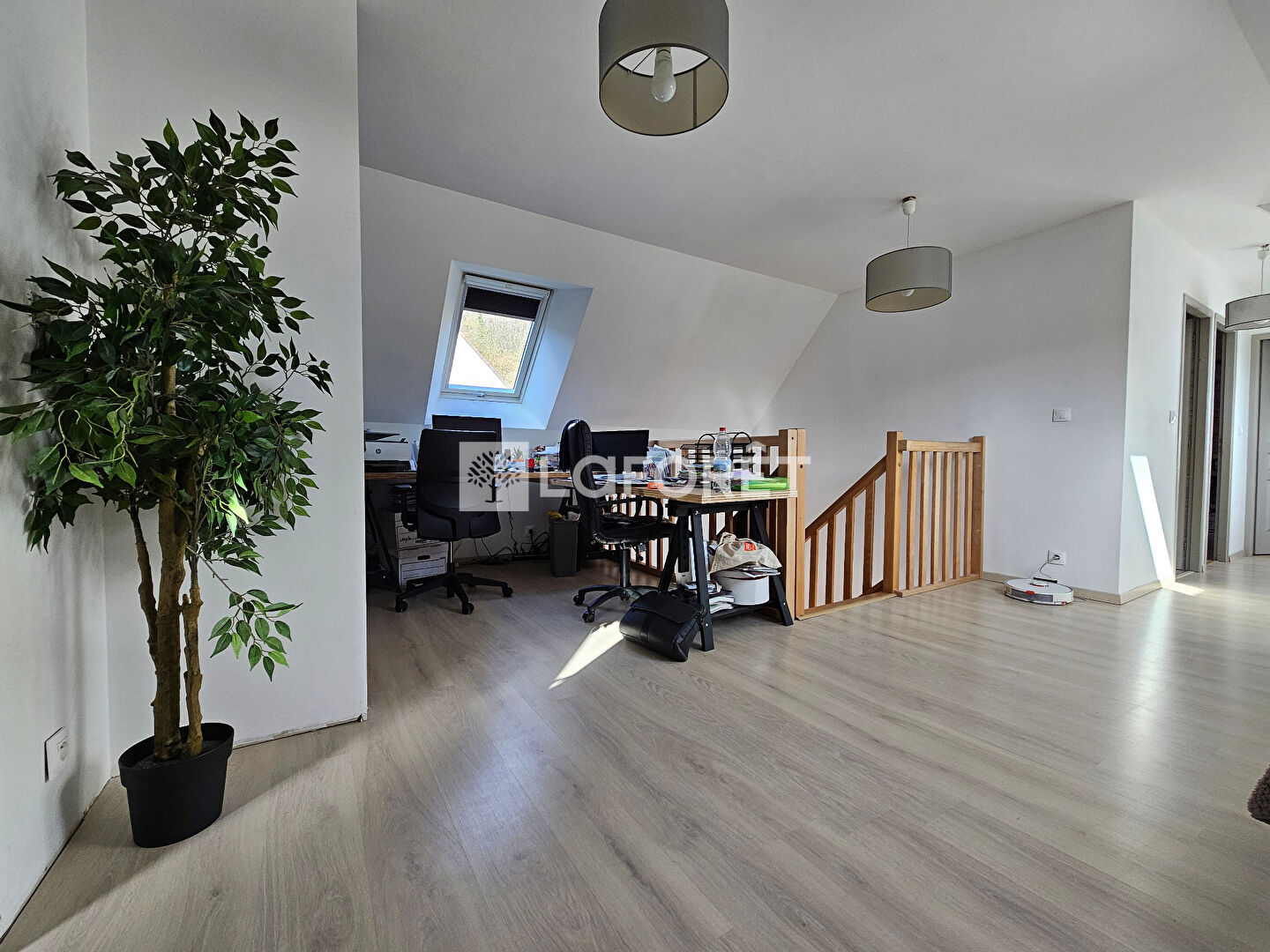 A l'étage, un grand palier desservant trois chambres ainsi qu'une salle d'eau.
