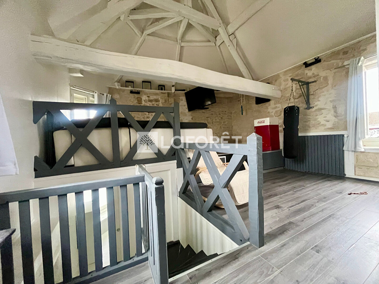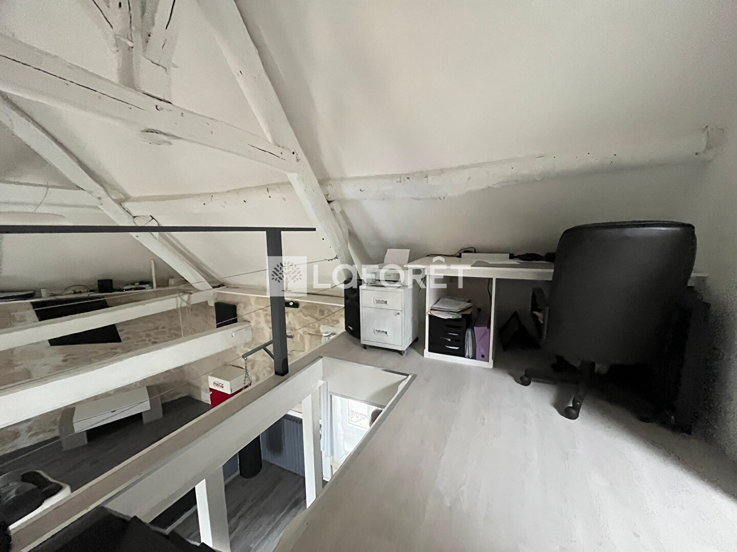 Puis en mezzanine vous trouverez un palier/bureau ainsi qu'une chambre.