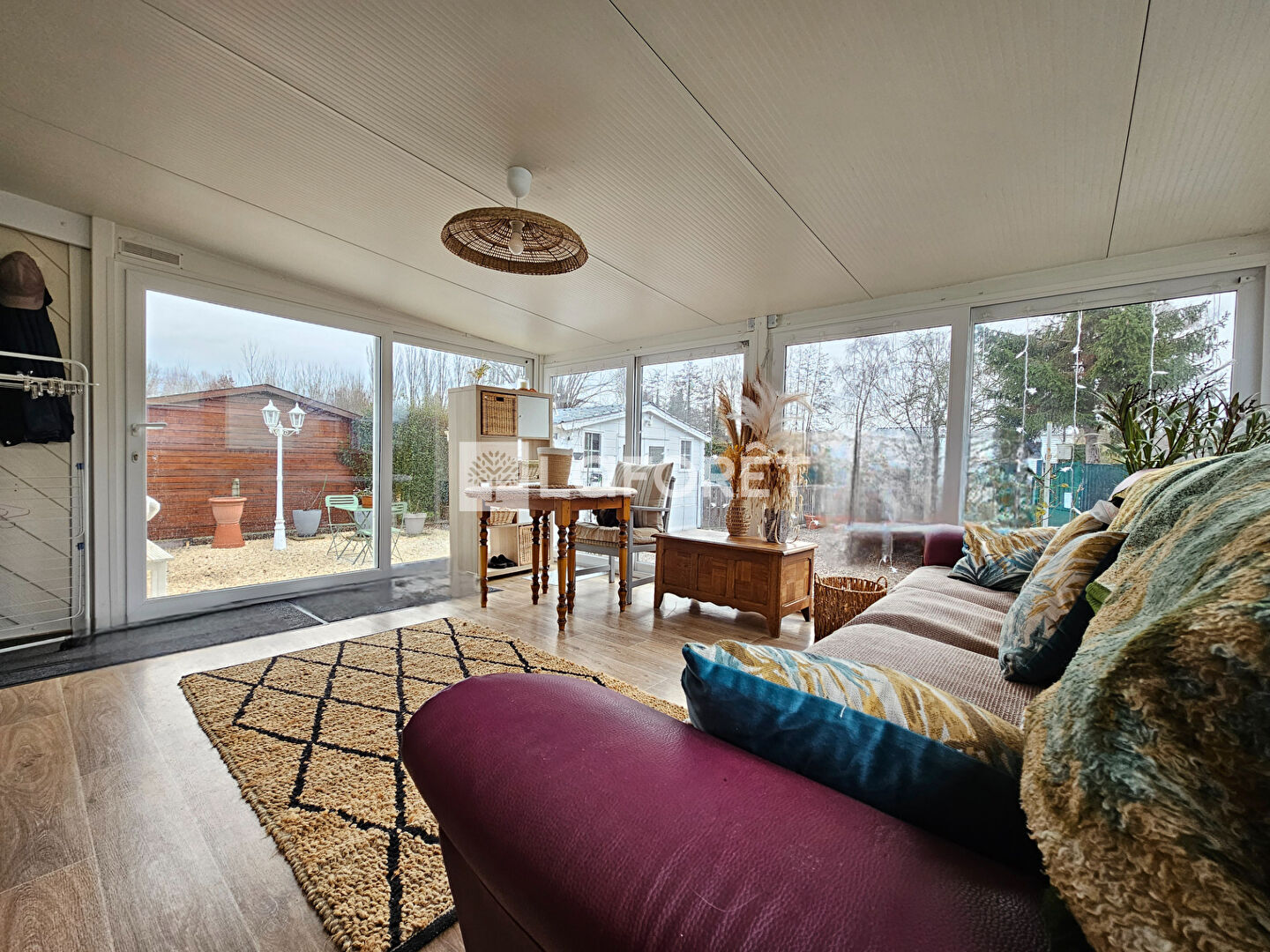 Votre Agence LAFORET de MOUY vous propose pour les amoureux de la nature en exclusivité cette construction à ossature légère situé sur le camping de Hondainville offrant entrée sur véranda, cuisine aménagée et équipée ouverte sur séjour, sde , wc, 2 chambres et un bureau aménagée en dressing