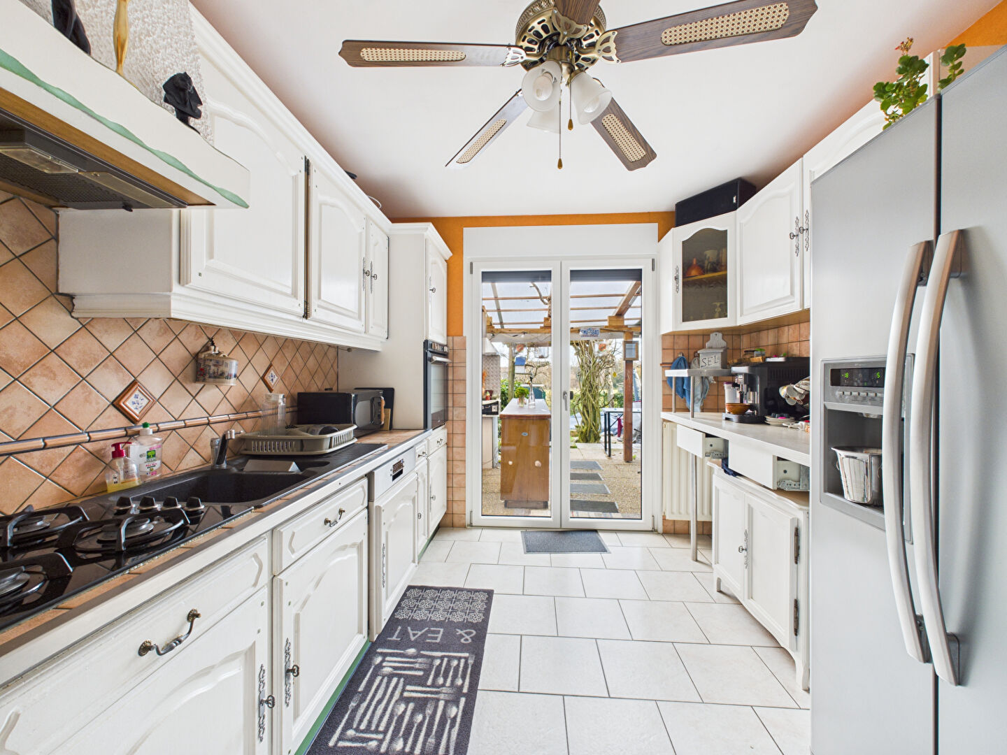 Maison jumelée comprenant : entrée, salon séjour avec accès à une terrasse couverte et au jardin, cuisine équipée, wc .