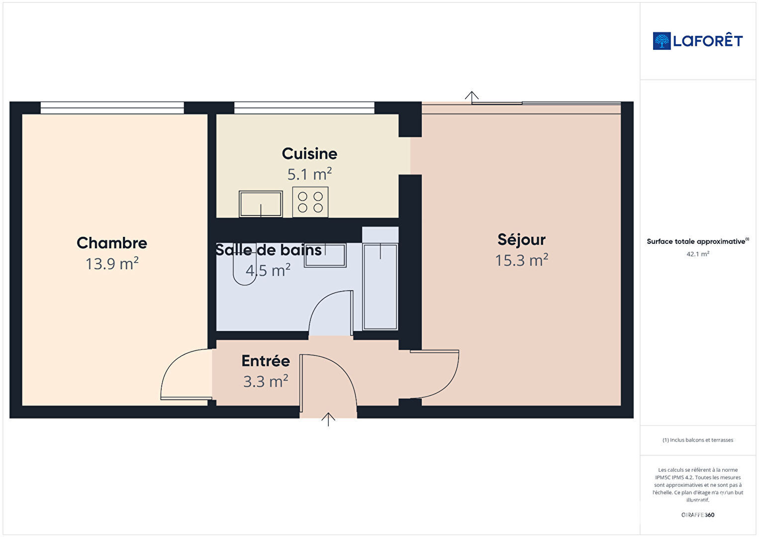 43 m² • 2 pièces • 1 chambre